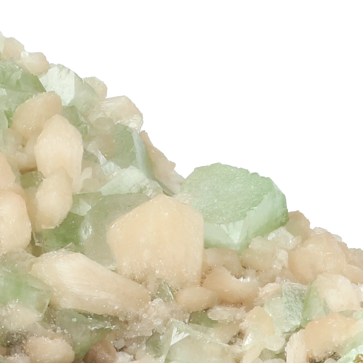 Binnen deze mix komen onder andere apofyliet, stilbiet, heulandiet, chalcedoon en scoleciet voor. De exacte samenstelling, kleur en vorm kunnen per stuk verschillen, wat elk exemplaar uniek maakt. De getoonde foto’s geven een realistisch beeld van wat je kunt verwachten, maar variaties zijn inherent aan dit type product.