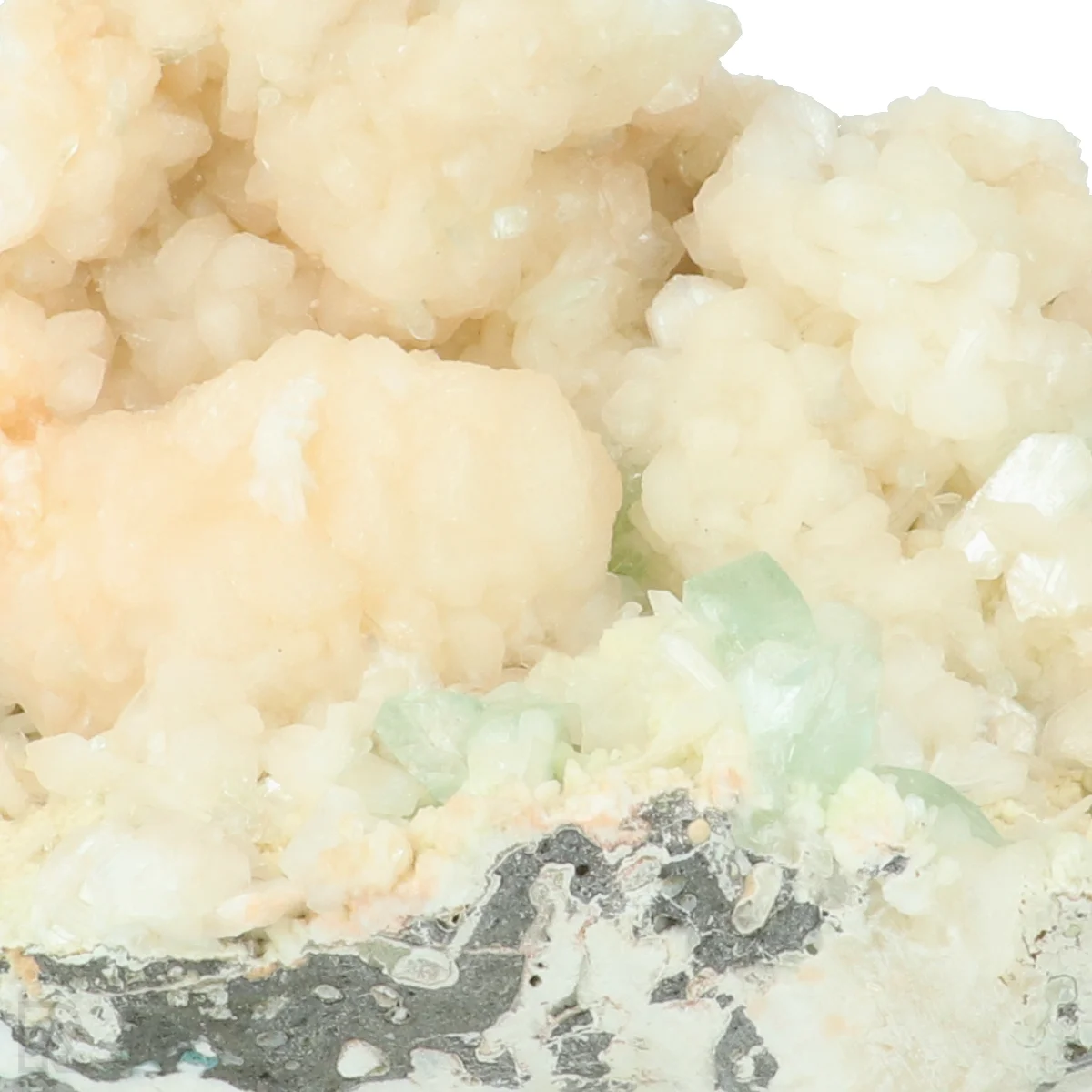 Binnen deze mix komen onder andere apofyliet, stilbiet, heulandiet, chalcedoon en scoleciet voor. De exacte samenstelling, kleur en vorm kunnen per stuk verschillen, wat elk exemplaar uniek maakt. De getoonde foto’s geven een realistisch beeld van wat je kunt verwachten, maar variaties zijn inherent aan dit type product.