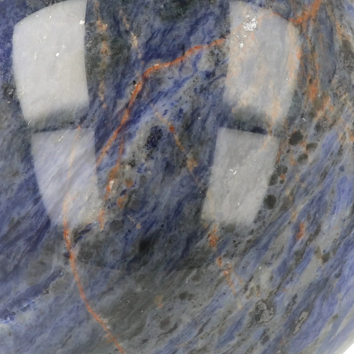 Sodalith ist ein blaues Mineral aus der Gruppe der Feldspatverwandten, das oft weiße Adern oder Flecken von Calcit enthält. Es wird wegen seiner tiefen Farbe und seines glasartigen Glanzes geschätzt. Sodalith kommt hauptsächlich in Eruptivgesteinen wie Syenit und Nephelinit vor.