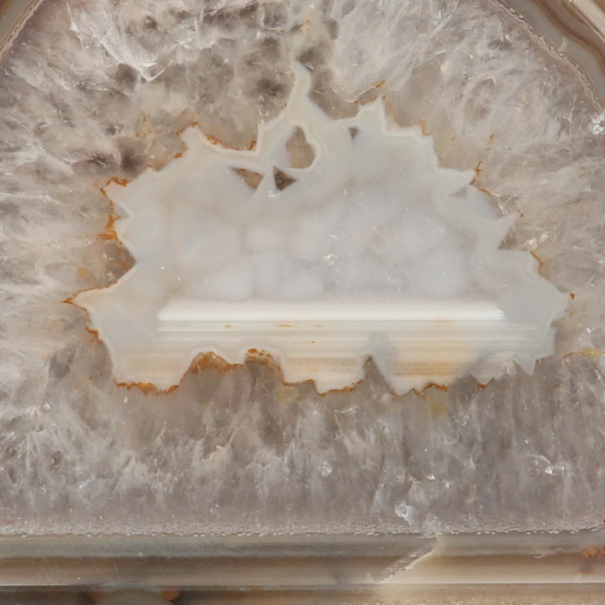 Eine Achatgeode hat normalerweise eine Ɩffnung mit sichtbarer Kristallbildung. Ein Achat-Ende (das Endstück einer Geode) ist in der Regel massiv und hat keine Ɩffnung, kann aber gelegentlich leichte Kristallbildung aufweisen. Der Achat auf Standard ist vollstƤndig massiv und sieht daher im Allgemeinen eintƶniger aus als ein Achatende.