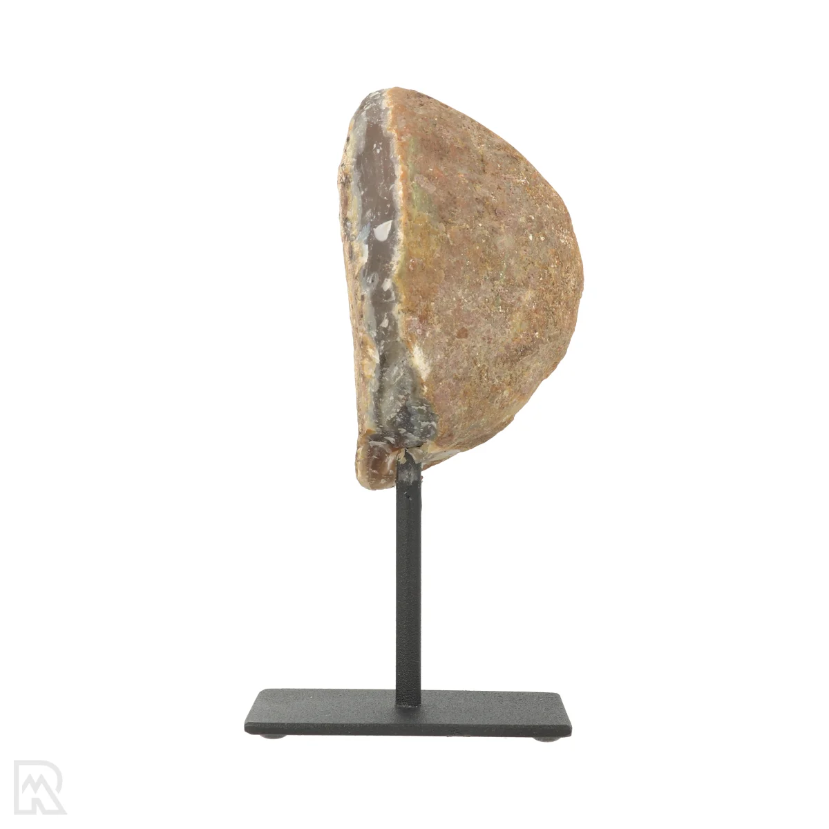 Dieser Achat wurde geschliffen, poliert und auf einen schwarz beschichteten StƤnder gesetzt. Wir haben drei Varianten in unserem Sortiment: Achat-Geode auf Standard, Achat Ende auf Standard und Achat auf Standard.