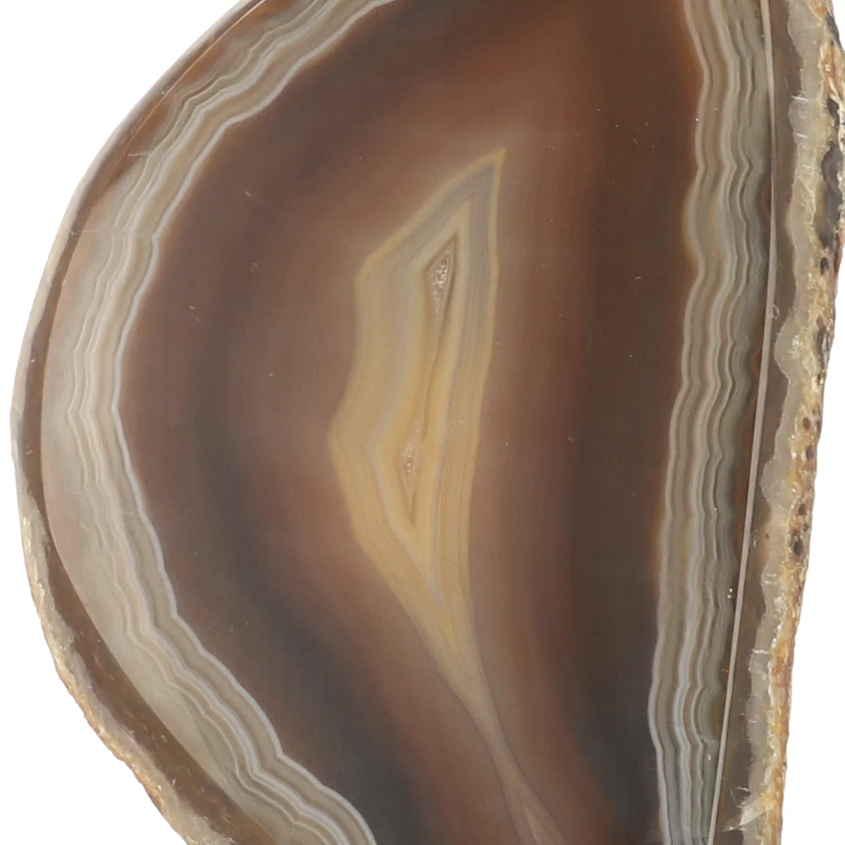 Eine Achatgeode hat normalerweise eine Ćffnung mit sichtbarer Kristallbildung. Ein Achat-Ende (das Endstück einer Geode) ist in der Regel massiv und hat keine Ćffnung, kann aber gelegentlich leichte Kristallbildung aufweisen. Der Achat auf Standard ist vollstƤndig massiv und sieht daher im Allgemeinen eintƶniger aus als ein Achatende.