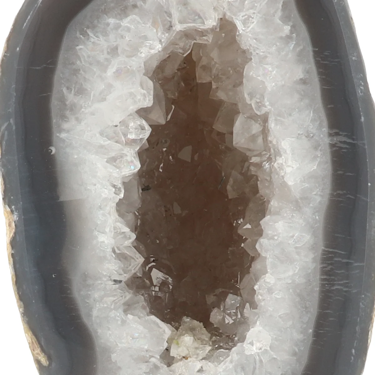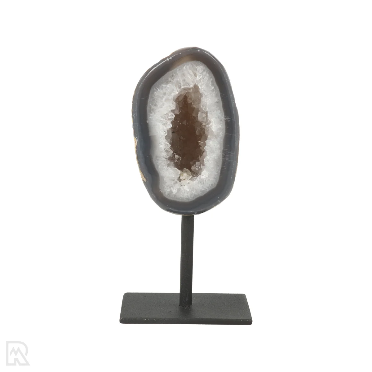 Dieser Achat (Geode) ist in zwei HƤlften geschnitten, poliert und auf einen schwarz beschichteten StƤnder montiert. Die Gesamthƶhe, einschlieĆlich StƤnder, variiert zwischen 12 und 15 cm. Der StƤnder misst 5 cm mal 7 cm. Bitte beachten Sie, dass kleine Unebenheiten oder Kratzer auf dem schwarzen StƤnder nicht immer zu vermeiden sind.