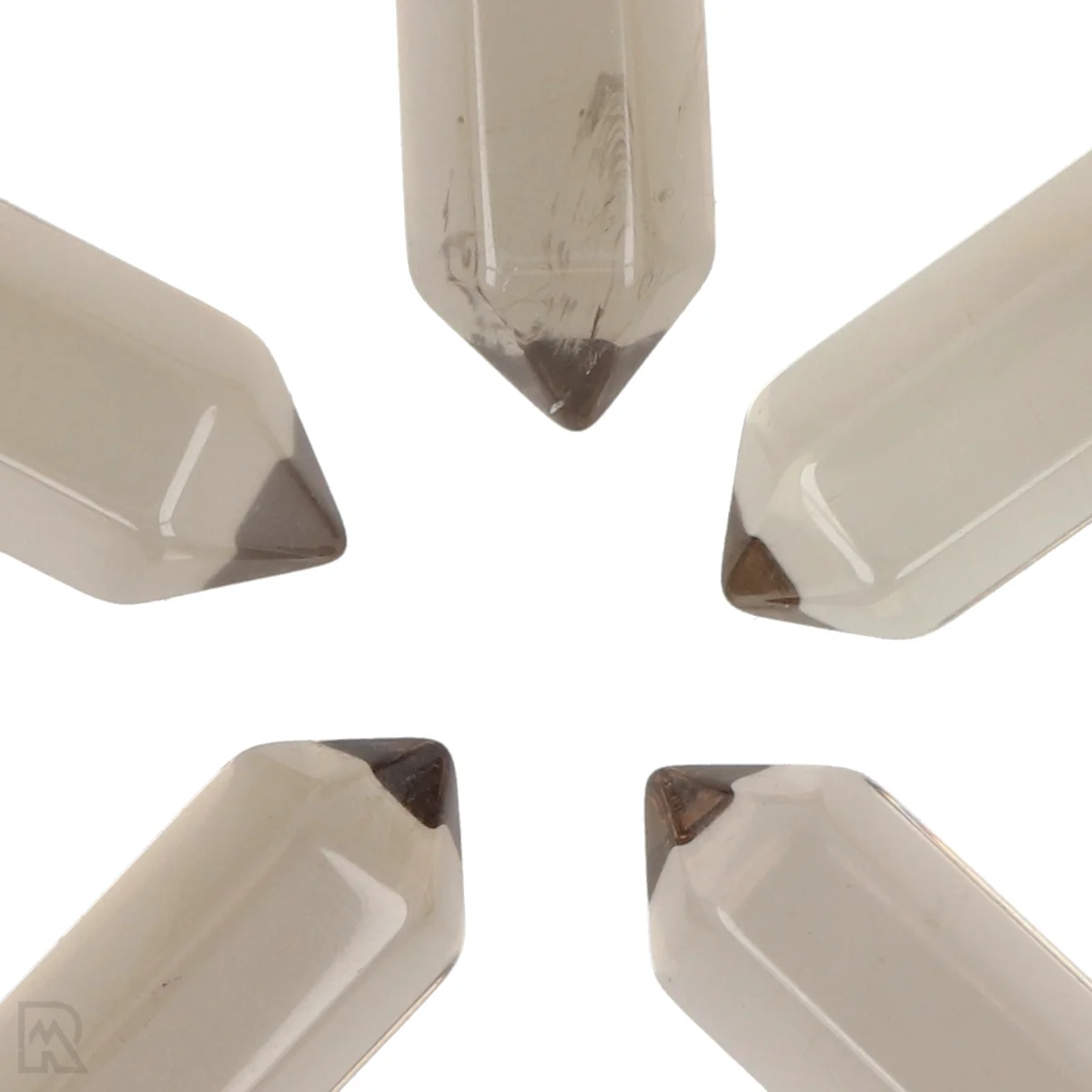 Rauchquarz ist eine braune bis grauschwarze Quarzsorte, die durch natürliche Strahlung gefärbt wird, die auf aluminiumhaltige Einschlüsse im Kristallgitter einwirkt. Die Farbintensität reicht von leicht transparent bis fast undurchsichtig schwarz, wobei ein glasartiger Glanz erhalten bleibt. Das Mineral wird häufig als polierter Stein oder in Form von Rohkristallen angeboten.