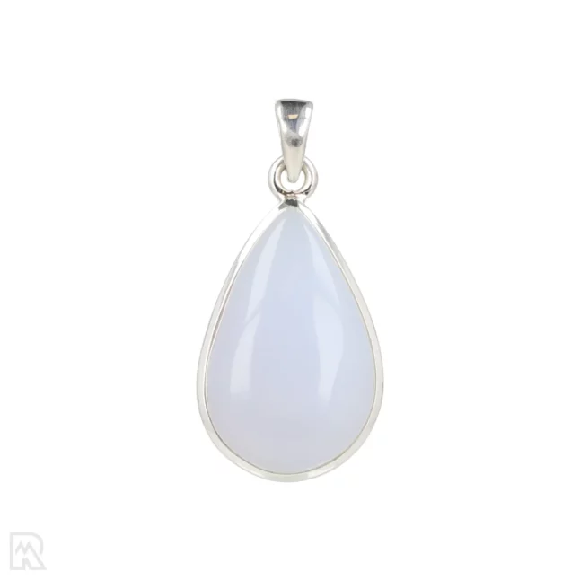 Chalcedony is a microcrystalline variety of quartz that occurs in a wide range of colours, with blue, grey and white being the most recognisable. The stone has a waxy luster and is often translucent. Due to its fine structure, chalcedony is widely used in jewellery and decorative objects.