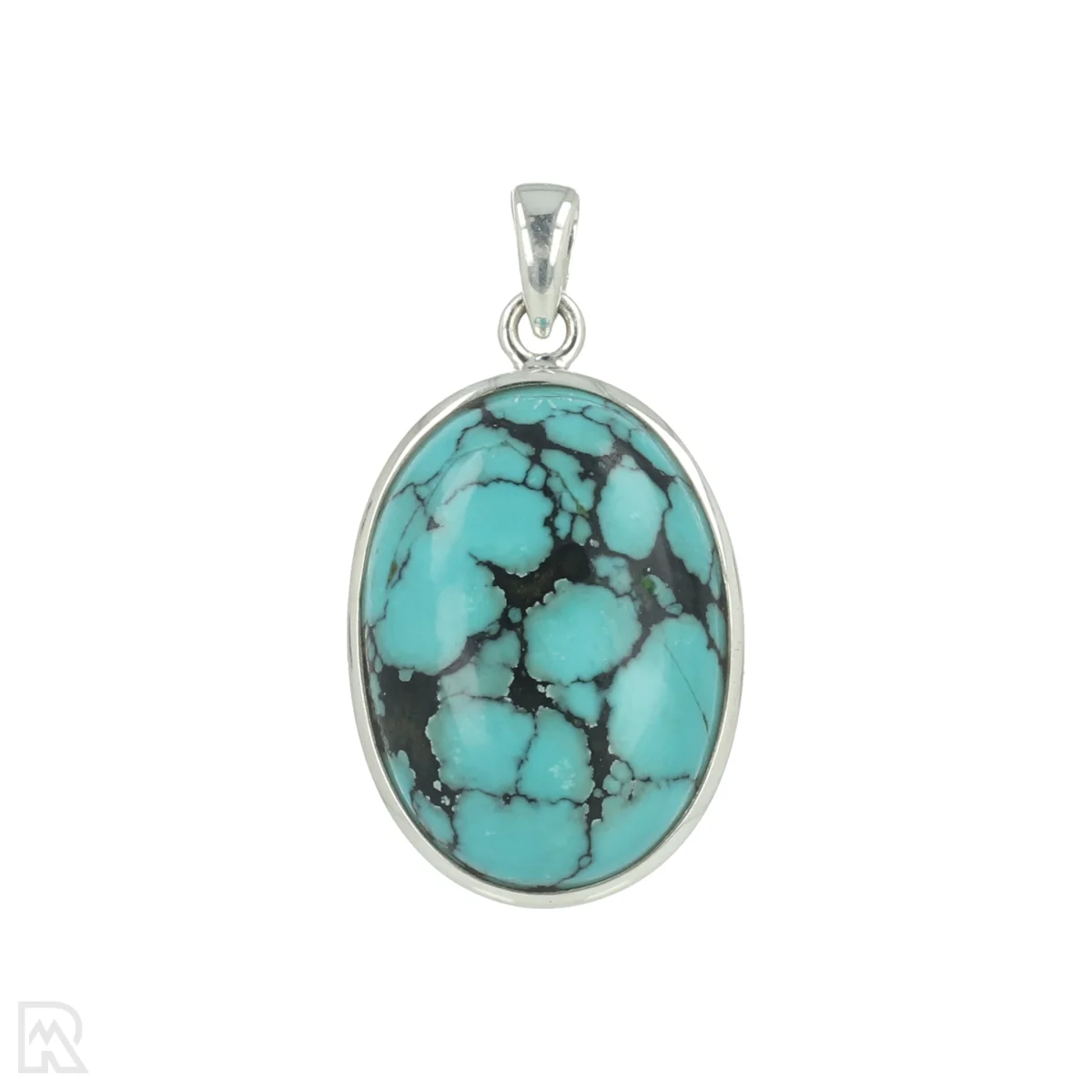 Turquoise is an opaque, blue to blue-green phosphate mineral that has been valued as a gemstone for thousands of years. The colour results from the presence of copper, while iron sometimes causes a greener hue. Turquoise often occurs with dark matrix lines of surrounding rock, giving it a distinctive appearance. The stone was named after the Turkish trade routes through which it was introduced to Europe.