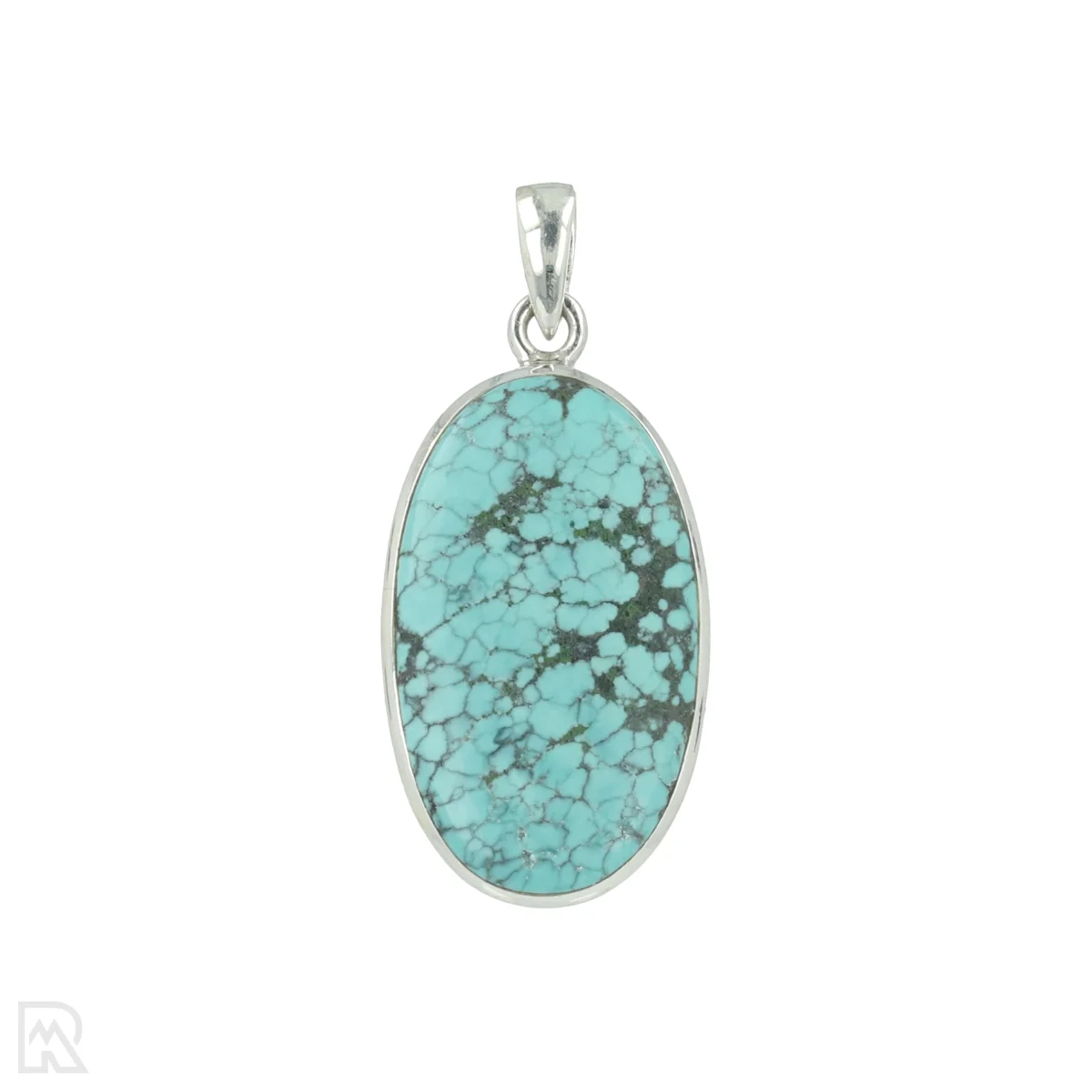 Turquoise is an opaque, blue to blue-green phosphate mineral that has been valued as a gemstone for thousands of years. The colour results from the presence of copper, while iron sometimes causes a greener hue. Turquoise often occurs with dark matrix lines of surrounding rock, giving it a distinctive appearance. The stone was named after the Turkish trade routes through which it was introduced to Europe.