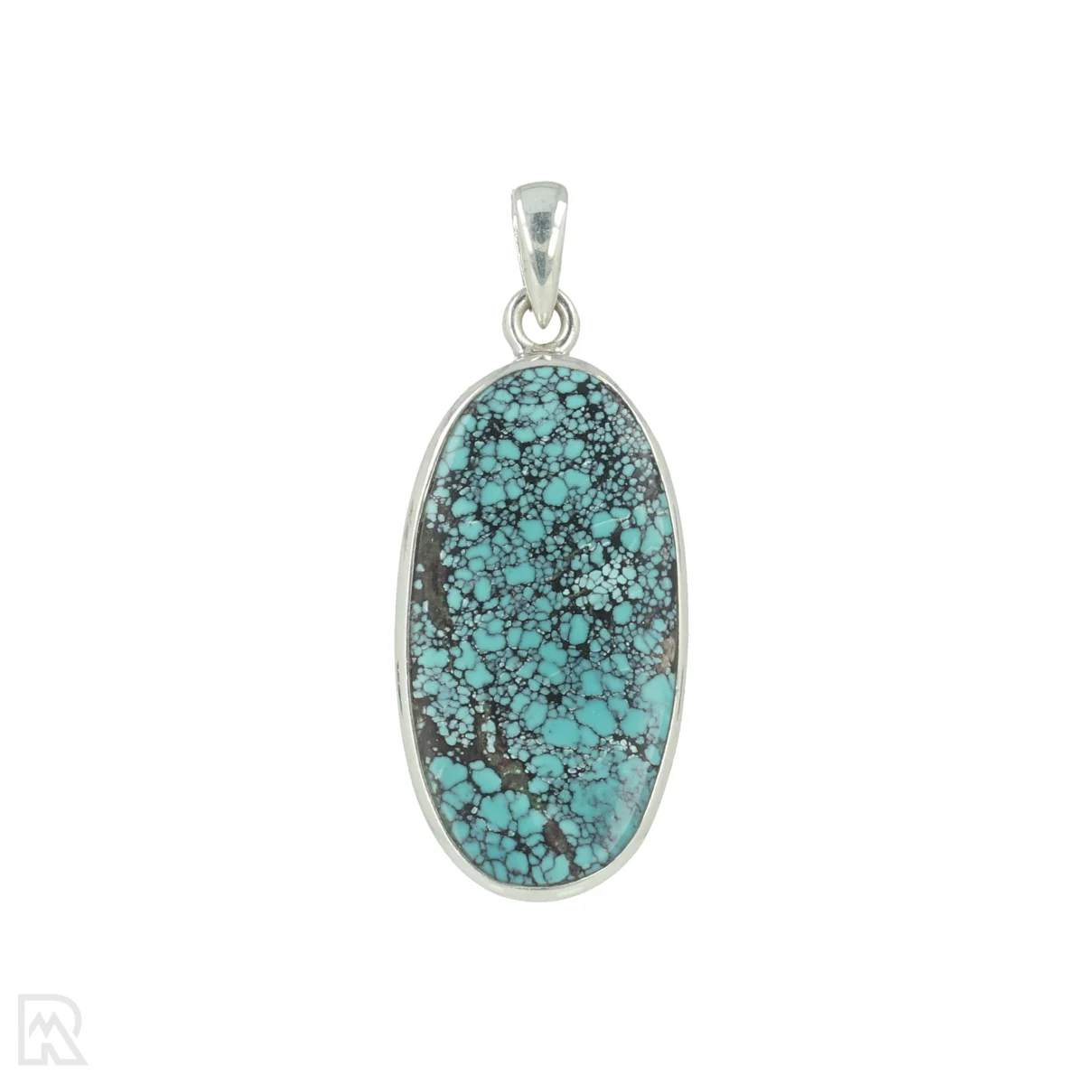 Turquoise is an opaque, blue to blue-green phosphate mineral that has been valued as a gemstone for thousands of years. The colour results from the presence of copper, while iron sometimes causes a greener hue. Turquoise often occurs with dark matrix lines of surrounding rock, giving it a distinctive appearance. The stone was named after the Turkish trade routes through which it was introduced to Europe.