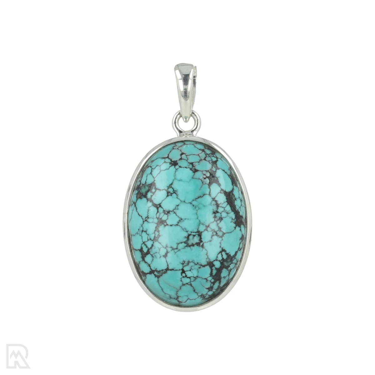 Turquoise is an opaque, blue to blue-green phosphate mineral that has been valued as a gemstone for thousands of years. The colour results from the presence of copper, while iron sometimes causes a greener hue. Turquoise often occurs with dark matrix lines of surrounding rock, giving it a distinctive appearance. The stone was named after the Turkish trade routes through which it was introduced to Europe.