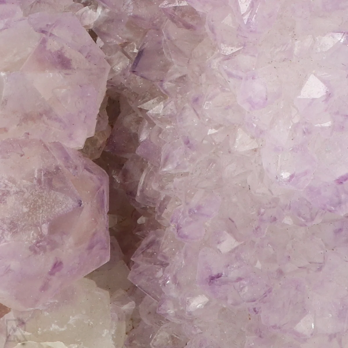 Major deposits include Brazil, Uruguay, Zambia, Madagascar and Russia. The mineral forms in hydrothermal veins and magmatic rocks such as basalt, where it forms crystals in geodes. Its chemical formula is SiOâ‚‚ and its hardness is 7 on the Mohs scale. Variants such as chevron amethyst and Siberian amethyst are popular for their pattern or deep colour.