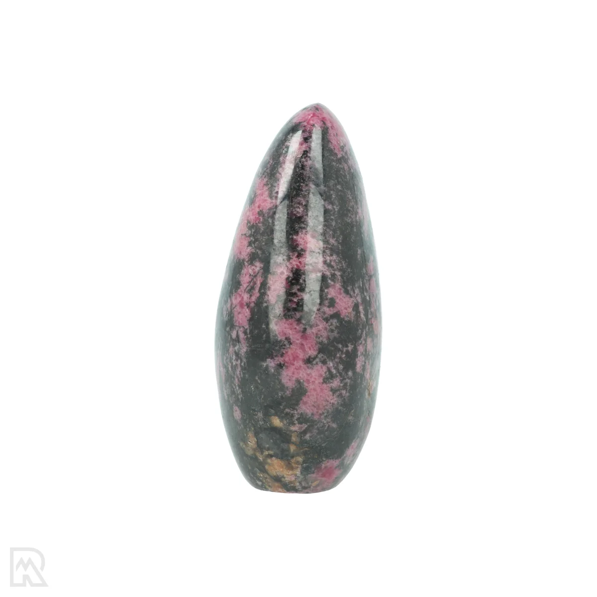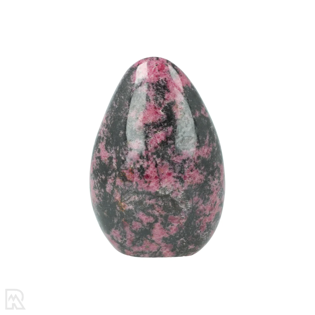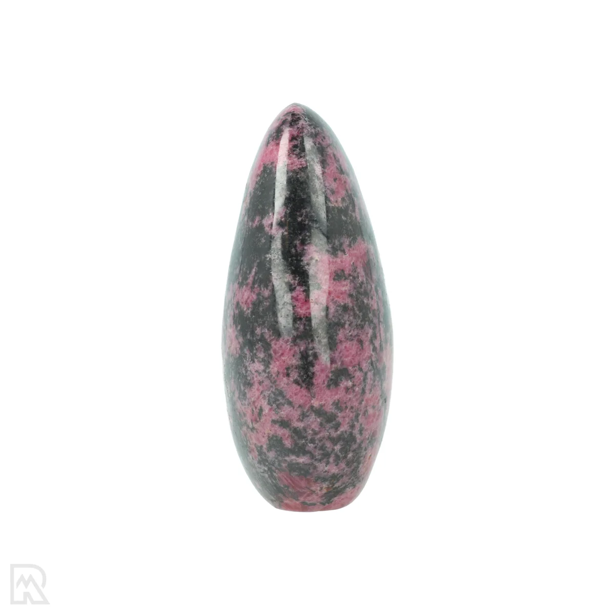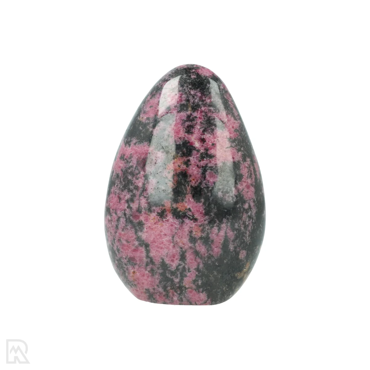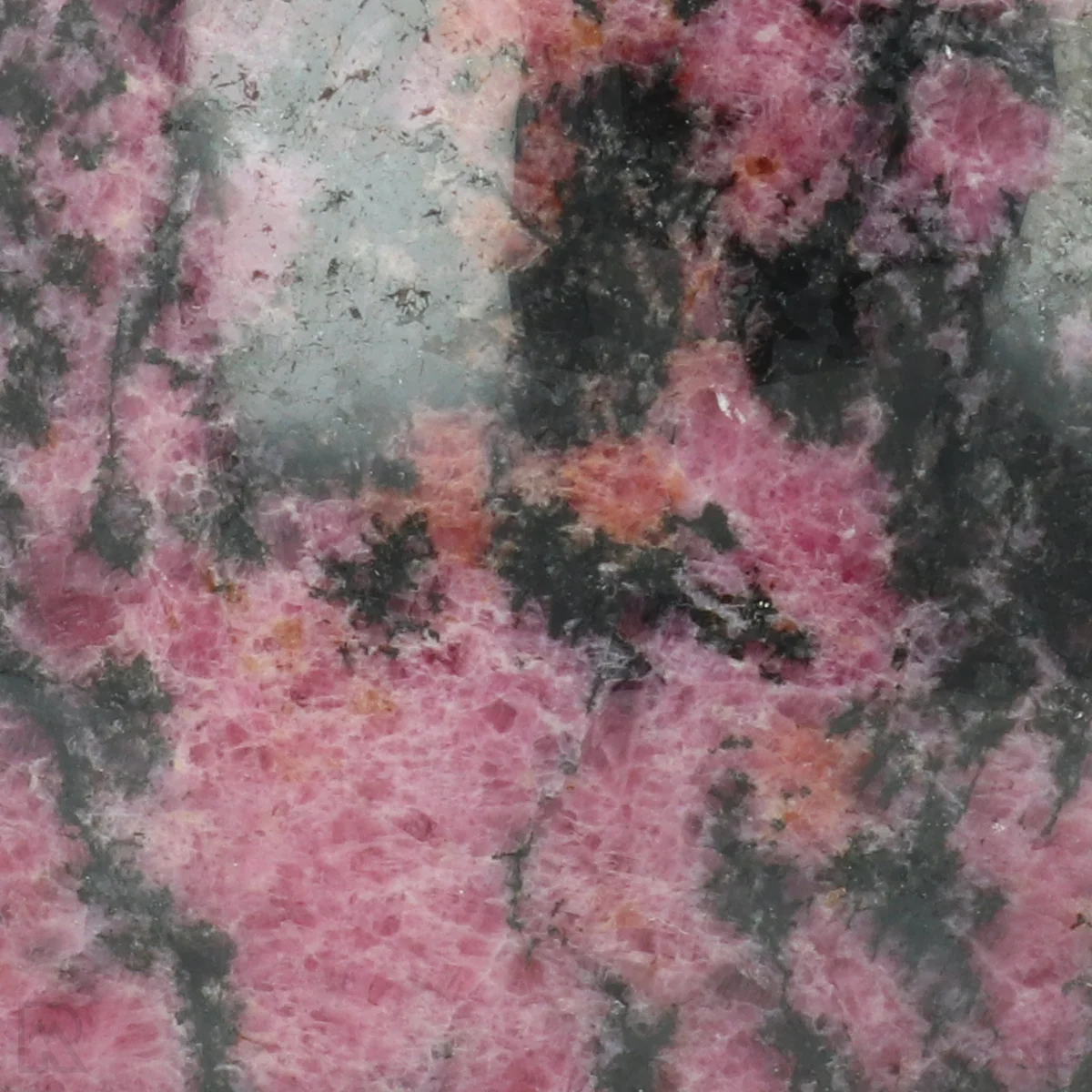 Rhodonite is a manganese silicate known for its pink to reddish colour, often with black veins of manganese oxide. The mineral usually forms in metamorphic rocks and is found worldwide. The striking colour combination makes rhodonite popular for decorative applications and jewellery.