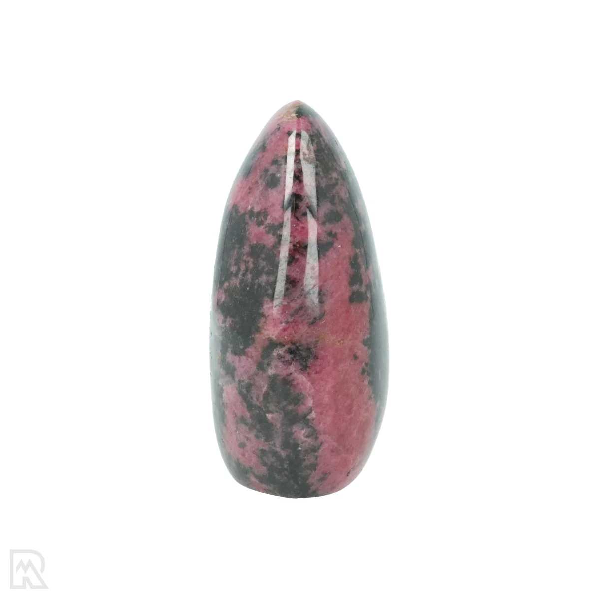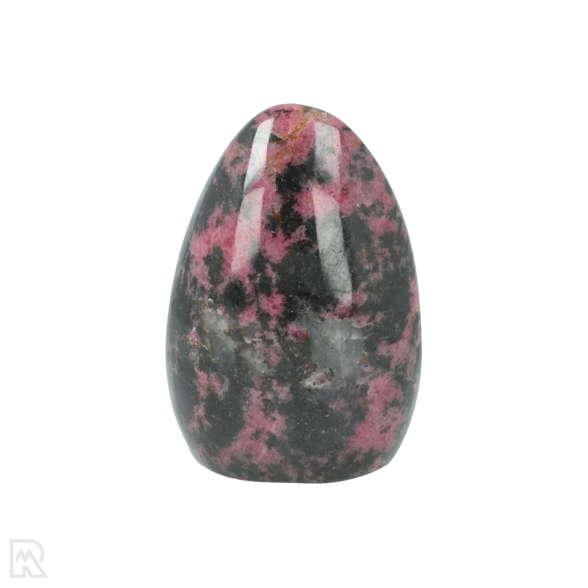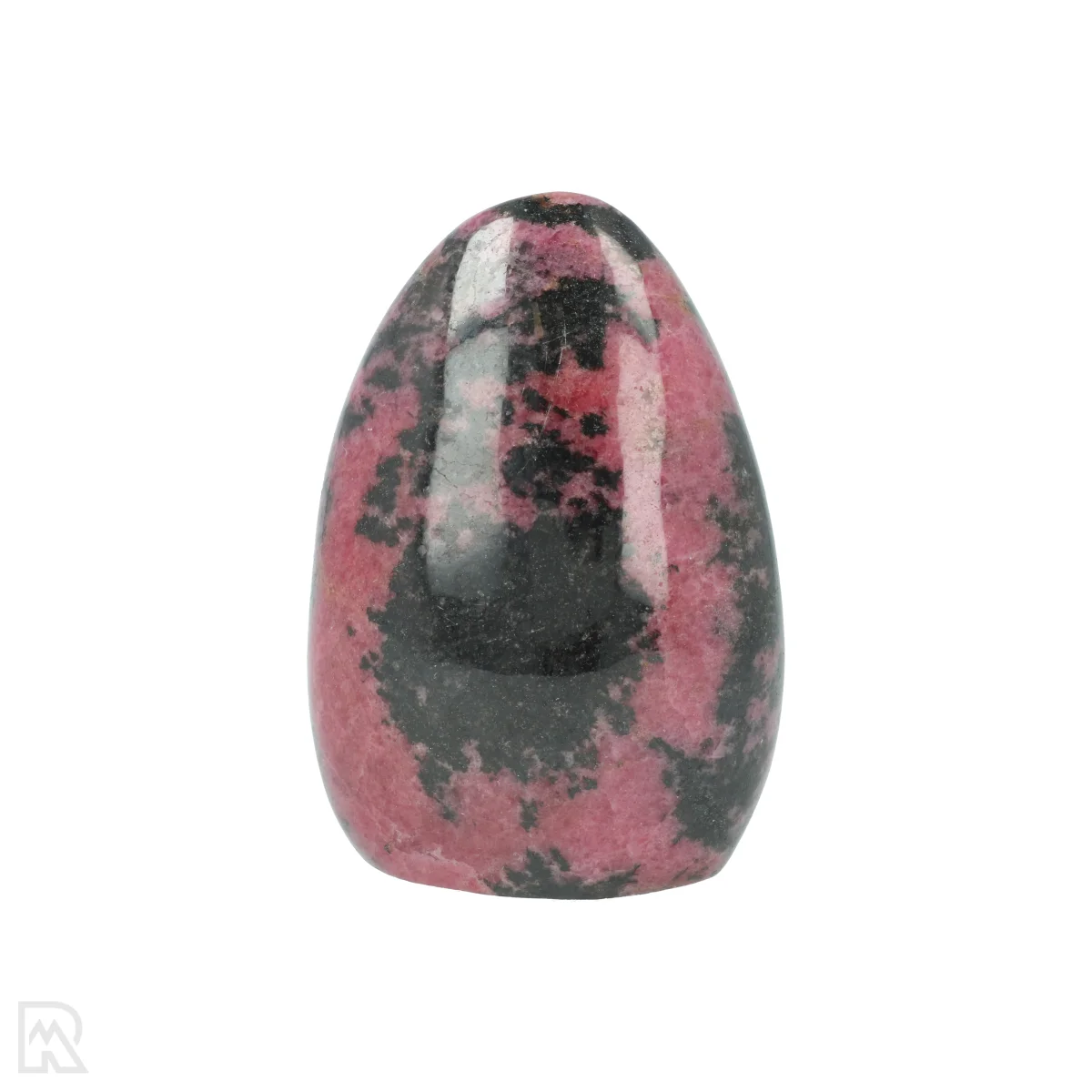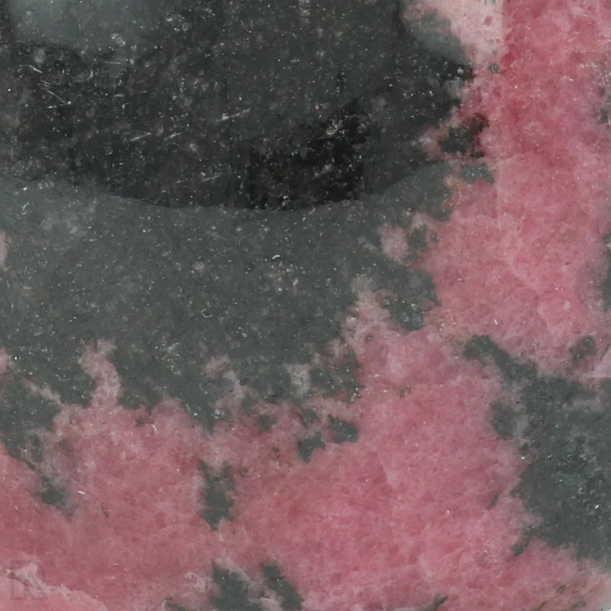 Rhodonite is a manganese silicate known for its pink to reddish colour, often with black veins of manganese oxide. The mineral usually forms in metamorphic rocks and is found worldwide. The striking colour combination makes rhodonite popular for decorative applications and jewellery.