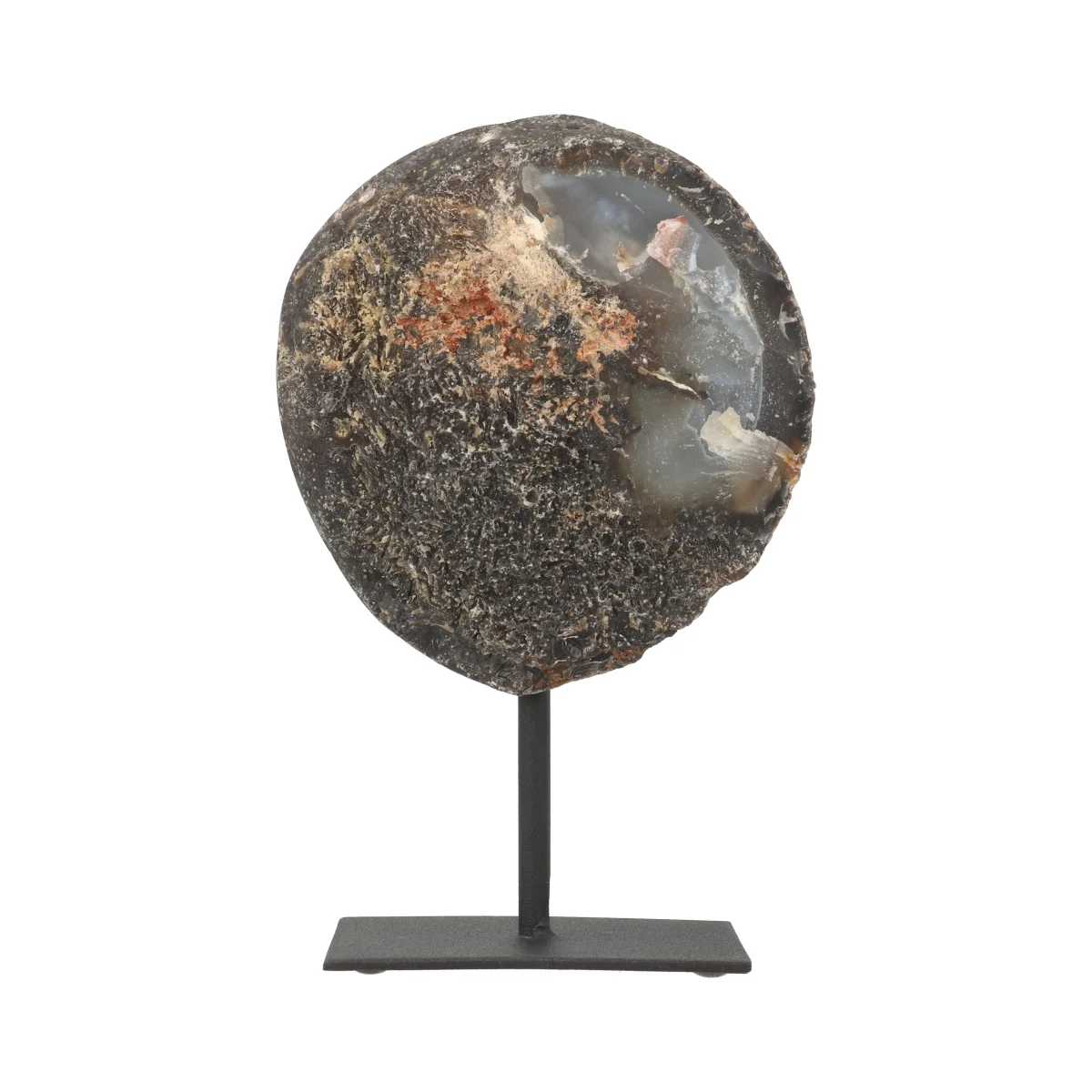 This Agate has been cut, polished and placed on a black coated stand. We have three variants in our range: Agate Geode on Standard, Agate End on Stand and Agate on Standard.