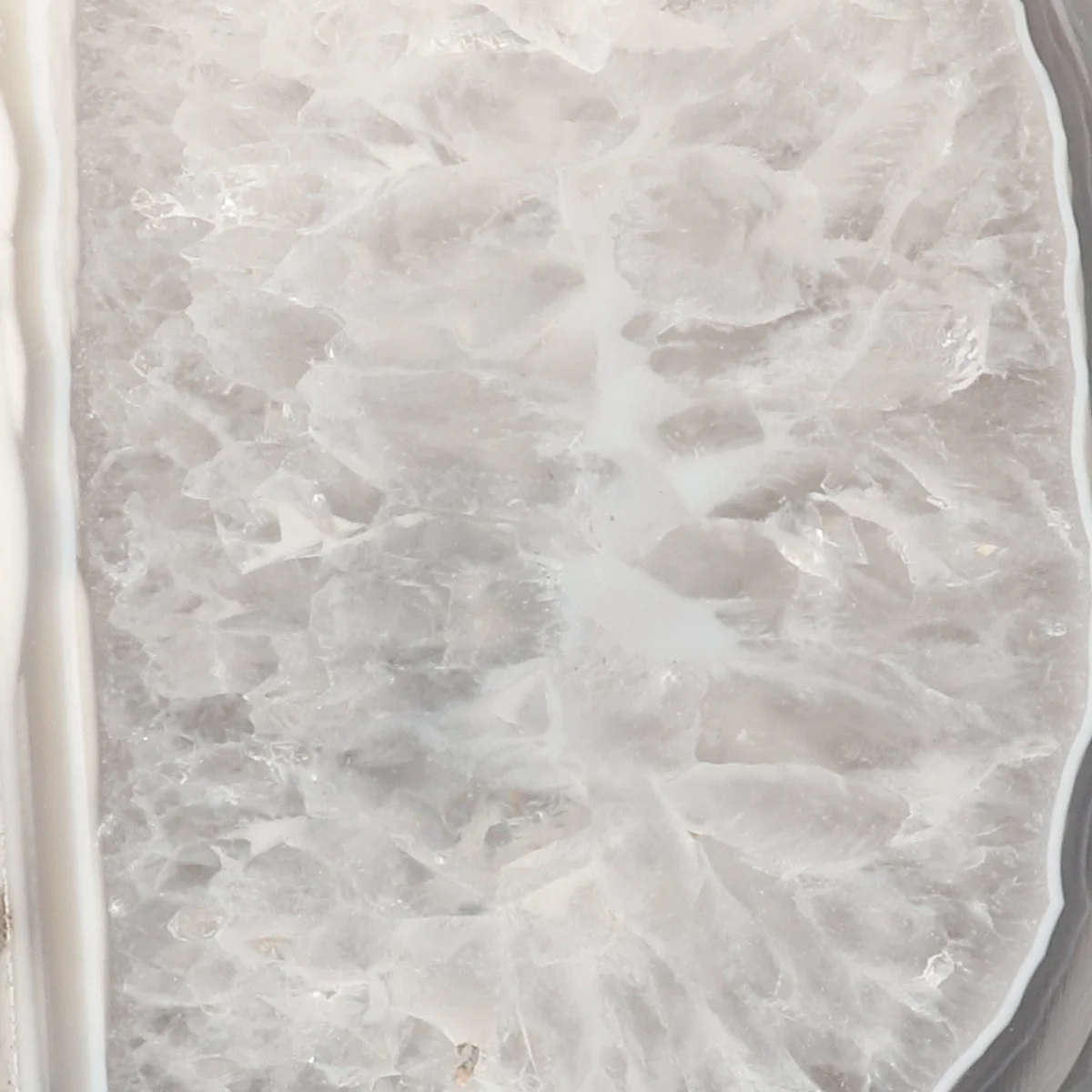 An Agate Geode usually has an opening with visible crystal formation. An Agate End (the end piece of a geode) is usually solid and has no opening, but may very occasionally contain slight crystal formation. The Agate on Standard is completely solid and therefore generally looks more monotonous than an Agate End.