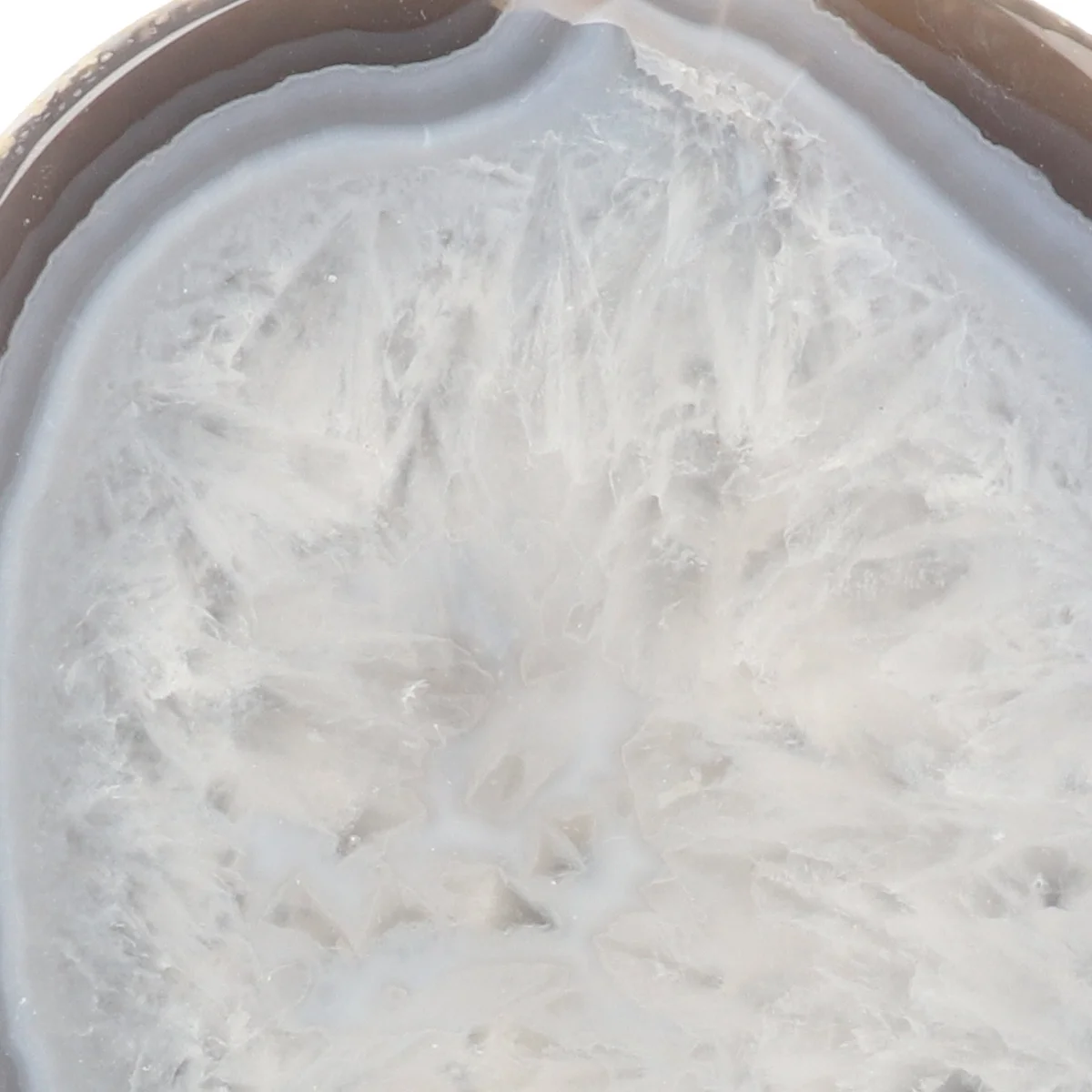An Agate Geode usually has an opening with visible crystal formation. An Agate End (the end piece of a geode) is usually solid and has no opening, but may very occasionally contain slight crystal formation. The Agate on Standard is completely solid and therefore generally looks more monotonous than an Agate End.