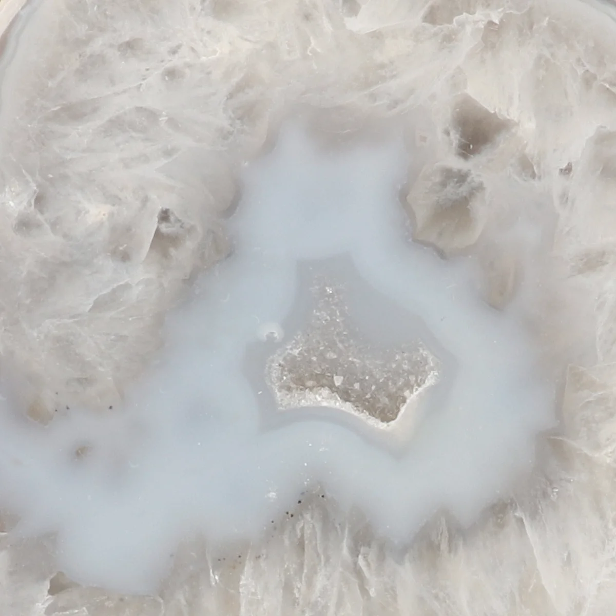 An Agate Geode usually has an opening with visible crystal formation. An Agate End (the end piece of a geode) is usually solid and has no opening, but may very occasionally contain slight crystal formation. The Agate on Standard is completely solid and therefore generally looks more monotonous than an Agate End.