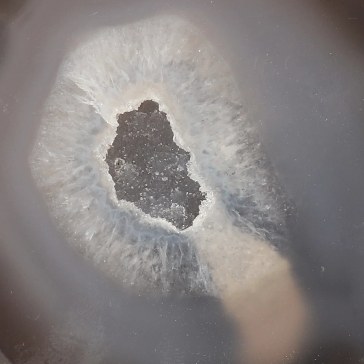 This Agate has been cut, polished and placed on a black coated stand. We have three variants in our range: Agate Geode on Standard, Agate End on Stand and Agate on Standard.