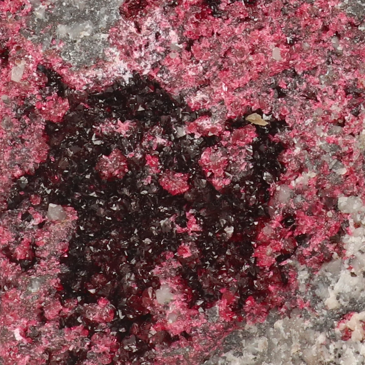 Erytrite is a striking and rare mineral that immediately attracts attention with its intense pink to crimson colour. These vibrant hues are created by the presence of cobalt, which gives Erytrite its distinctive, almost velvety appearance. The crystals often form in fine needles or rosette-like structures and sometimes grow as a shimmering layer over the parent rock.