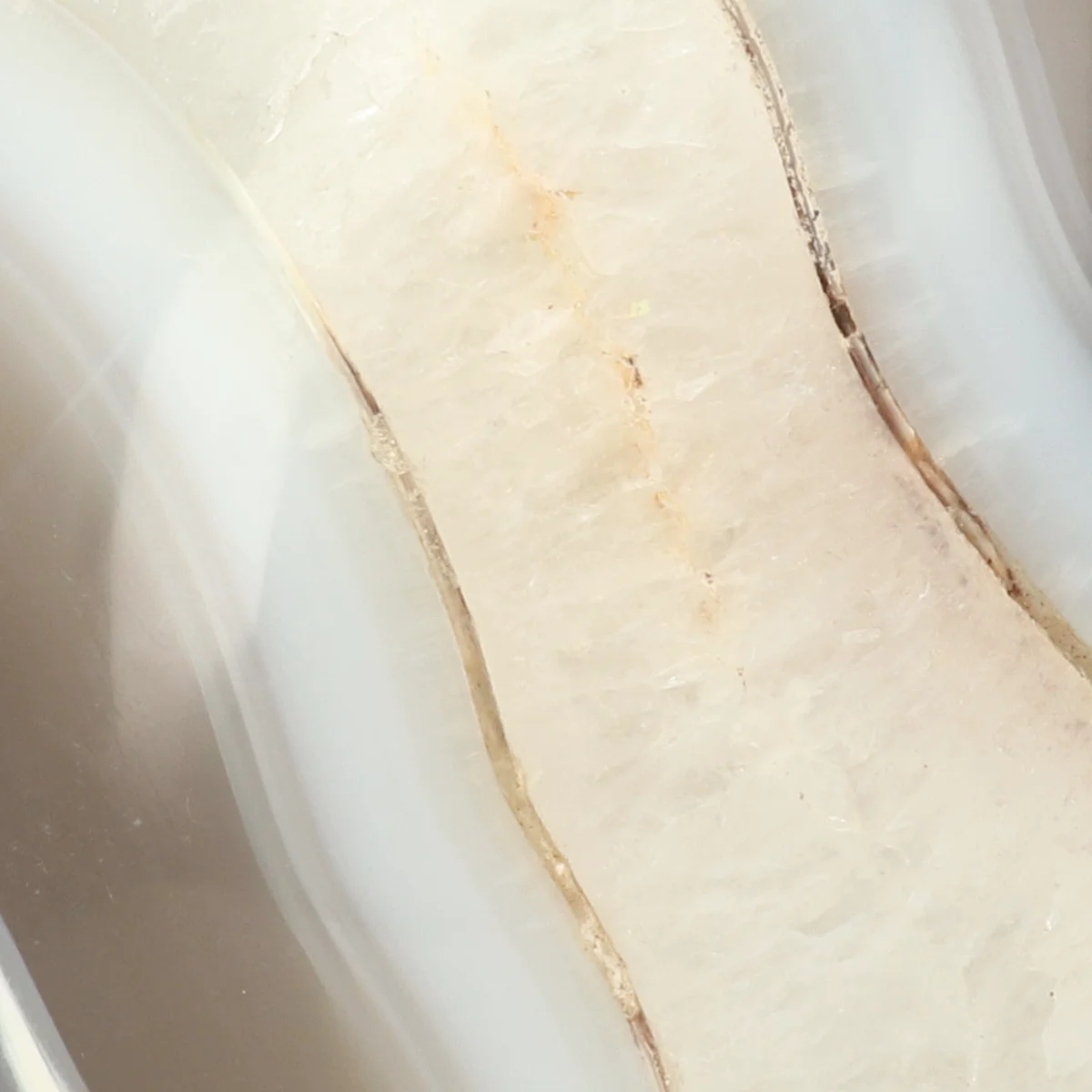 Agate is a multicoloured variety of chalcedony, characterised by its fine band structures and layered patterns. The colours result from different minerals deposited in layers during formation. Agate has been used for jewellery and decoration for thousands of years because of its attractive appearance and wide variety of shapes.