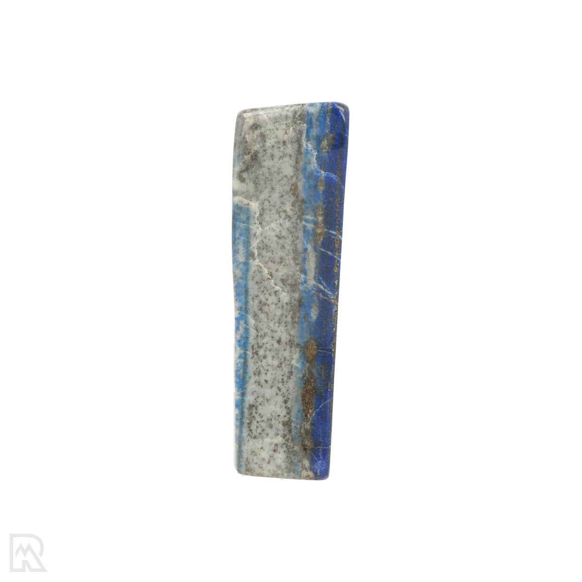 Lapis Lazuli is a deep blue rock composed mainly of the mineral lazurite, often accompanied by calcite and pyrite. The stone has been in use for jewellery, sculpture and pigment for thousands of years, and was particularly prized in ancient times for its intense colour. Small golden inclusions of pyrite give lapis lazuli a characteristic speckled appearance.