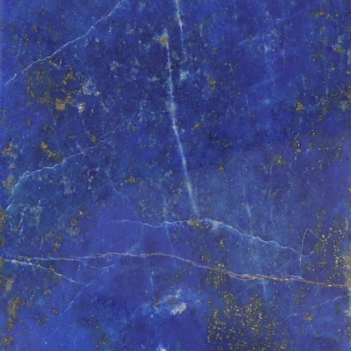 Lapis Lazuli is a deep blue rock composed mainly of the mineral lazurite, often accompanied by calcite and pyrite. The stone has been in use for jewellery, sculpture and pigment for thousands of years, and was particularly prized in ancient times for its intense colour. Small golden inclusions of pyrite give lapis lazuli a characteristic speckled appearance.