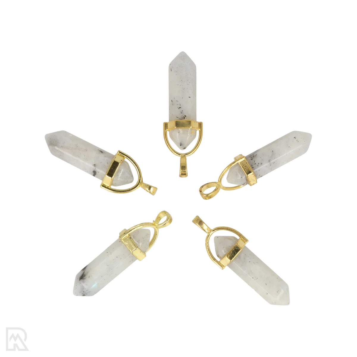 Regenboog Maansteen Dubbeleinder Hanger | Goudkleurig – 3,2 cm