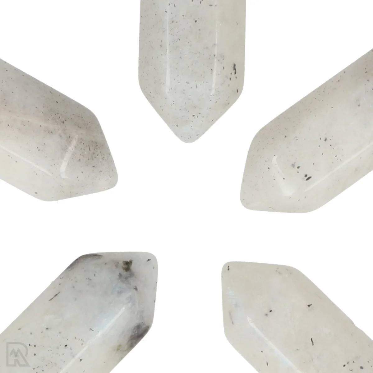 Moonstone is a shimmering variety of feldspar, known for the optical effect called adularescence - a soft, luminous glow just below the surface of the stone. The colour ranges from colourless to white, peach, grey or blue, often with a characteristic sheen.