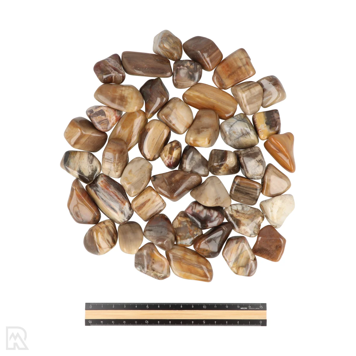 Petrified wood occurs when wood becomes fossilised over a long period through the process of permineralisation, where organic material is replaced by minerals such as quartz. The original wood pattern is usually well preserved in the process, creating the recognisable wood texture in stone.