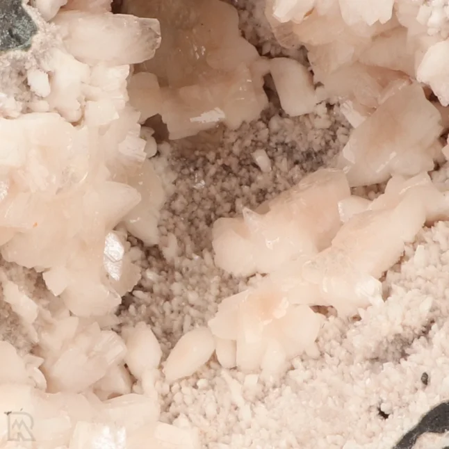 Heulandiet is een mineraal dat behoort tot de zeolieten. Deze geode (of gedeelte hiervan) is bedenkt met een laagje heulandiet en in sommige gevallen kan een stukje stilbiet of apofyliet ook voorkomen. Heulandiet kan zowel wit, roze en rood van kleur zijn en alles daar tussenin!