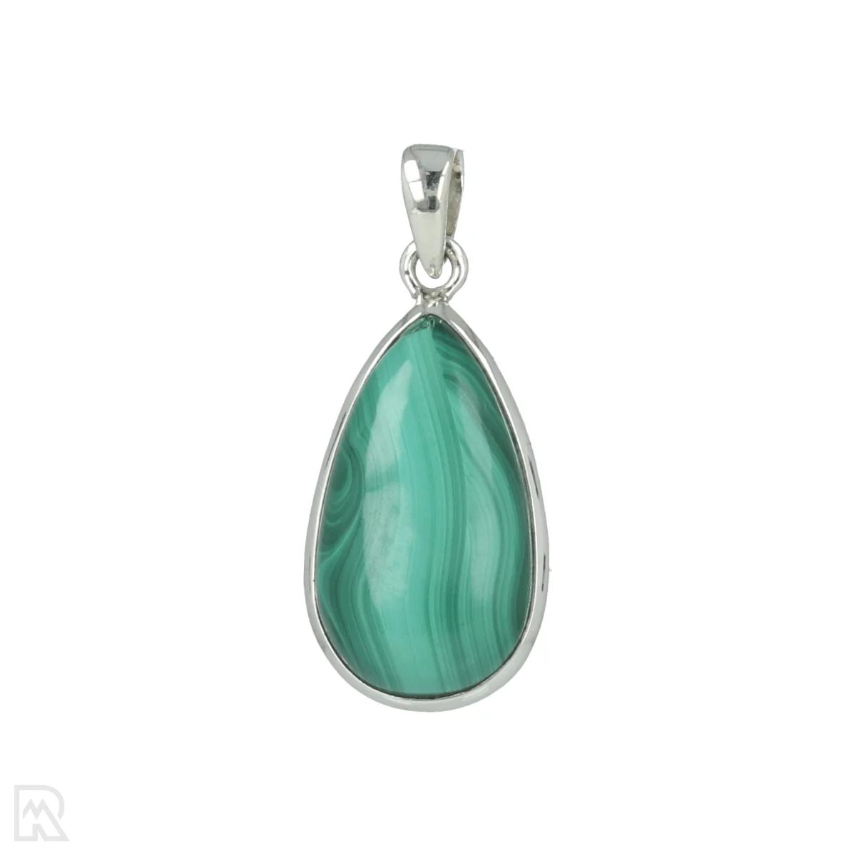 Malachiet is een intens groen koperhoudend mineraal dat opvalt door zijn karakteristieke bandpatronen en glas- tot zijdeachtige glans. De kleur varieert van lichtgroen tot donkergroen, vaak met concentrische of gelaagde tekeningen. Het mineraal vormt zich meestal in de oxidatiezones van koperafzettingen.