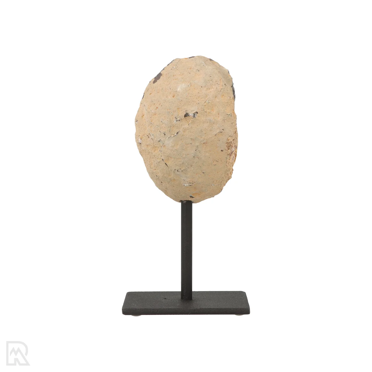 Deze Agaat (geode) is doormidden gezaagd, gepolijst en gemonteerd op een zwart gecoate standaard. De totale hoogte, inclusief standaard, varieert tussen de 12 en 15 cm. De standaard heeft een formaat van 5 bij 7 cm. Houd er rekening mee dat kleine imperfecties of krasjes op de zwarte standaard niet altijd te vermijden zijn.