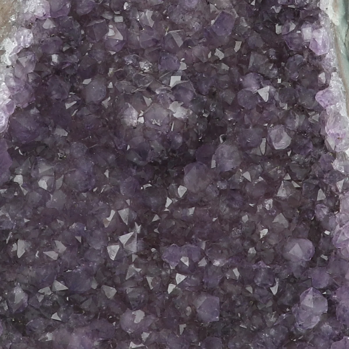 Amethist is de paarse variëteit van kwarts, gekleurd door sporen van ijzer en blootstelling aan natuurlijke straling. De kleur varieert van licht violet tot diep paars, en het kristalliseert vaak in zeshoekige prisma’s. Amethist wordt veel gebruikt als edelsteen en decoratief materiaal vanwege zijn aantrekkelijke kleur en transparantie.