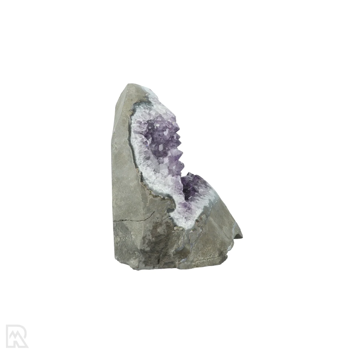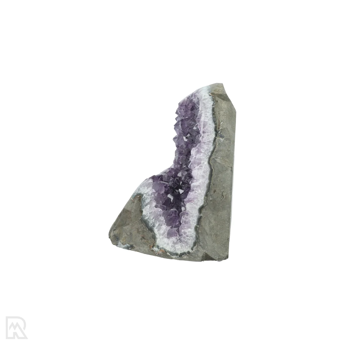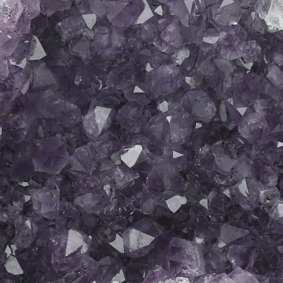 Amethist is de paarse variëteit van kwarts, gekleurd door sporen van ijzer en blootstelling aan natuurlijke straling. De kleur varieert van licht violet tot diep paars, en het kristalliseert vaak in zeshoekige prisma’s. Amethist wordt veel gebruikt als edelsteen en decoratief materiaal vanwege zijn aantrekkelijke kleur en transparantie.