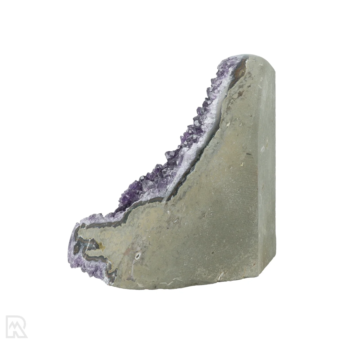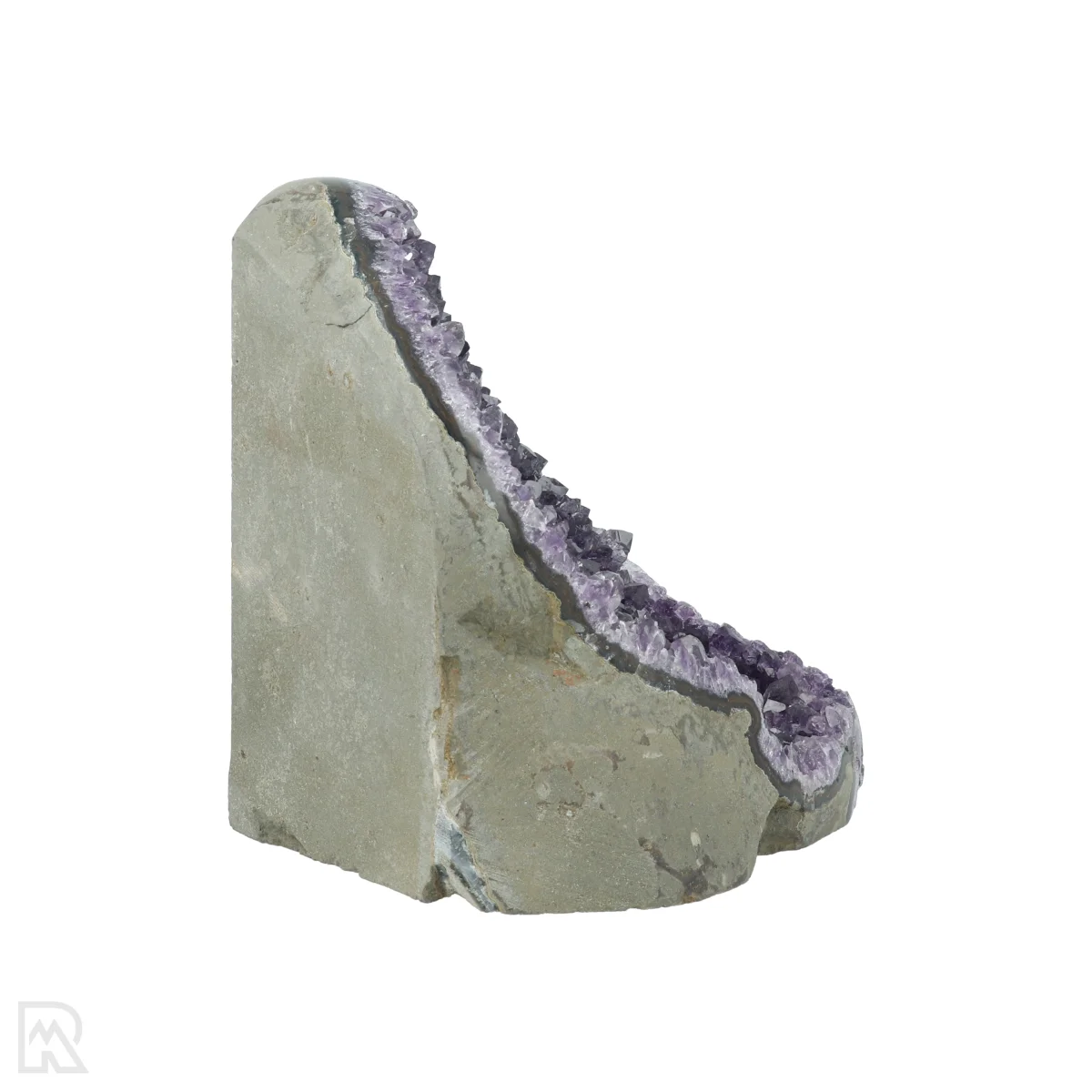 Amethist is de paarse variëteit van kwarts, gekleurd door sporen van ijzer en blootstelling aan natuurlijke straling. De kleur varieert van licht violet tot diep paars, en het kristalliseert vaak in zeshoekige prisma’s. Amethist wordt veel gebruikt als edelsteen en decoratief materiaal vanwege zijn aantrekkelijke kleur en transparantie.