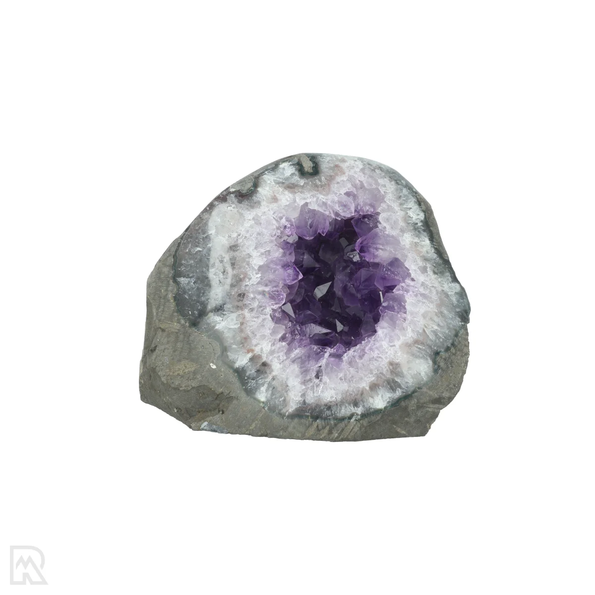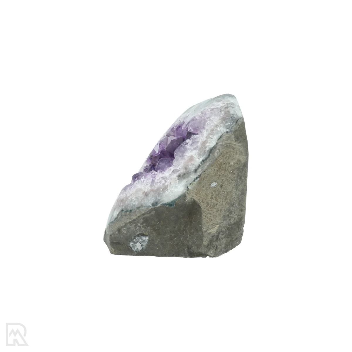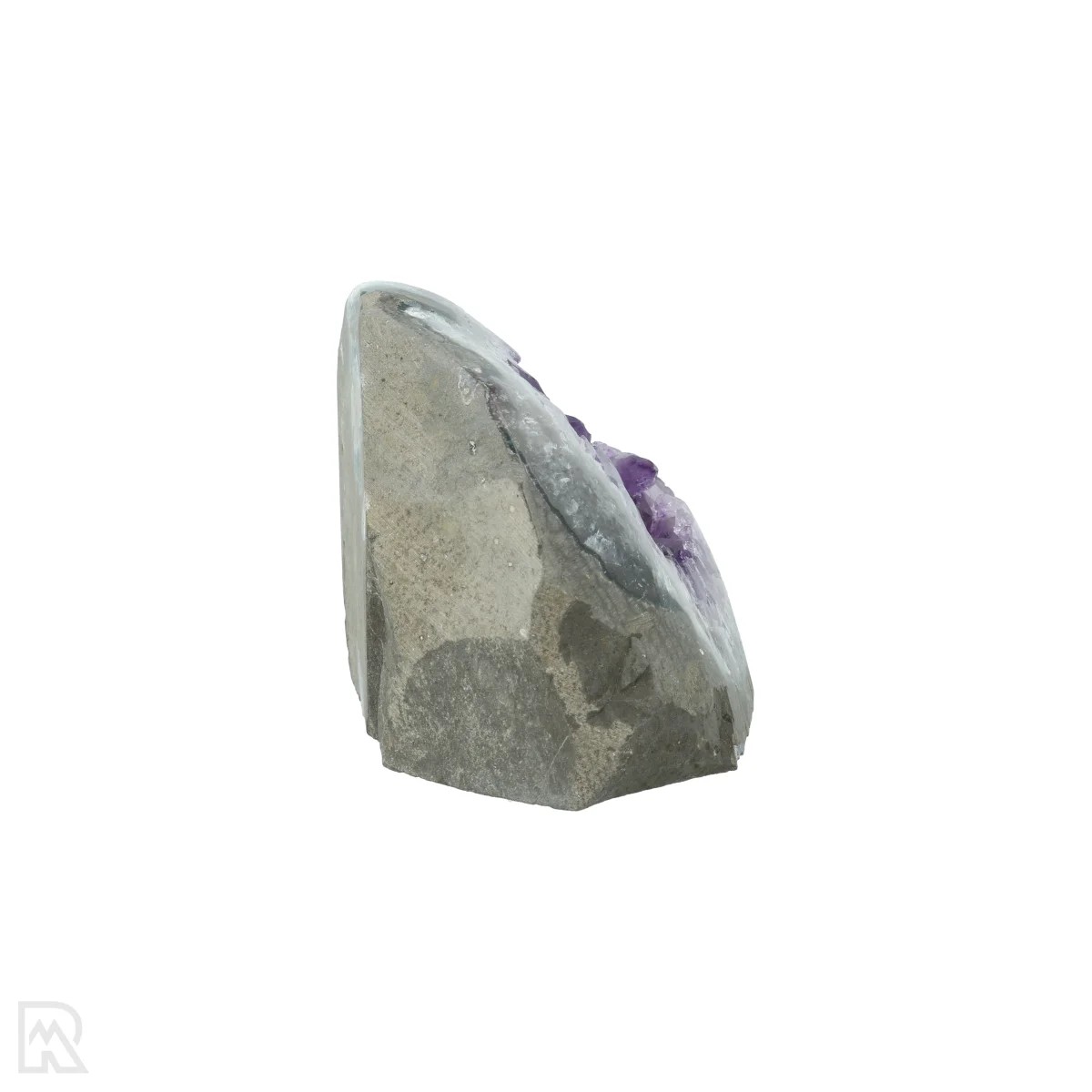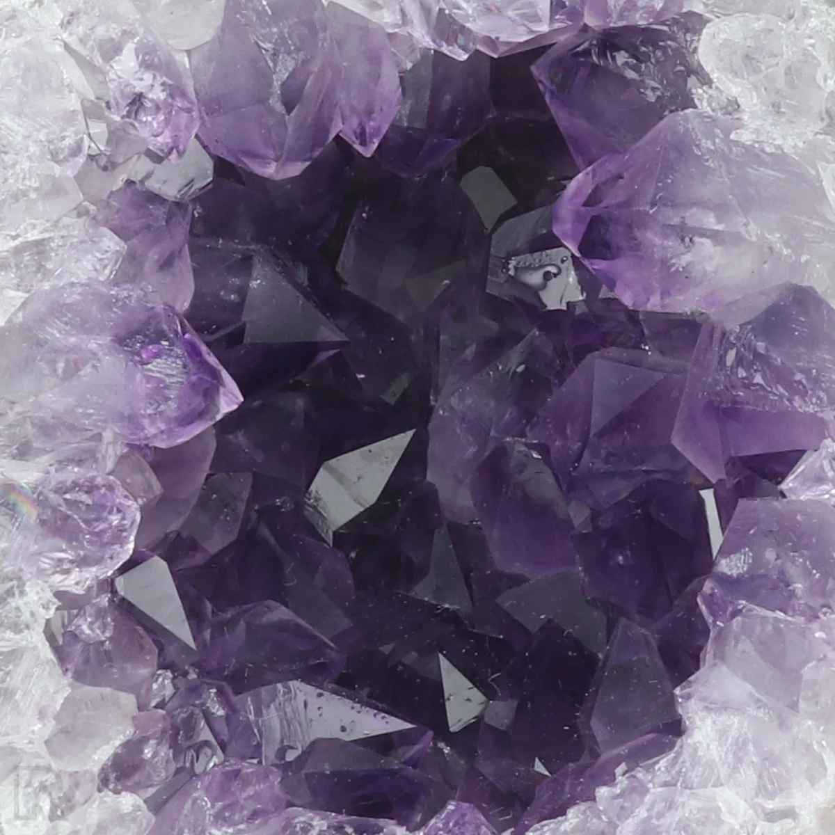 Amethist is de paarse variëteit van kwarts, gekleurd door sporen van ijzer en blootstelling aan natuurlijke straling. De kleur varieert van licht violet tot diep paars, en het kristalliseert vaak in zeshoekige prisma’s. Amethist wordt veel gebruikt als edelsteen en decoratief materiaal vanwege zijn aantrekkelijke kleur en transparantie.
