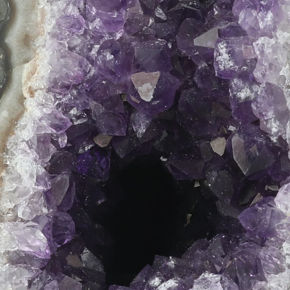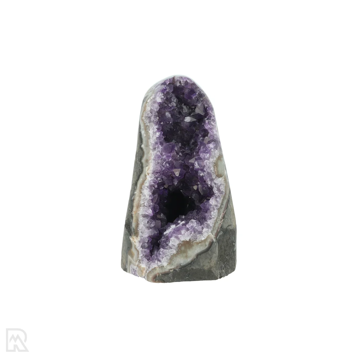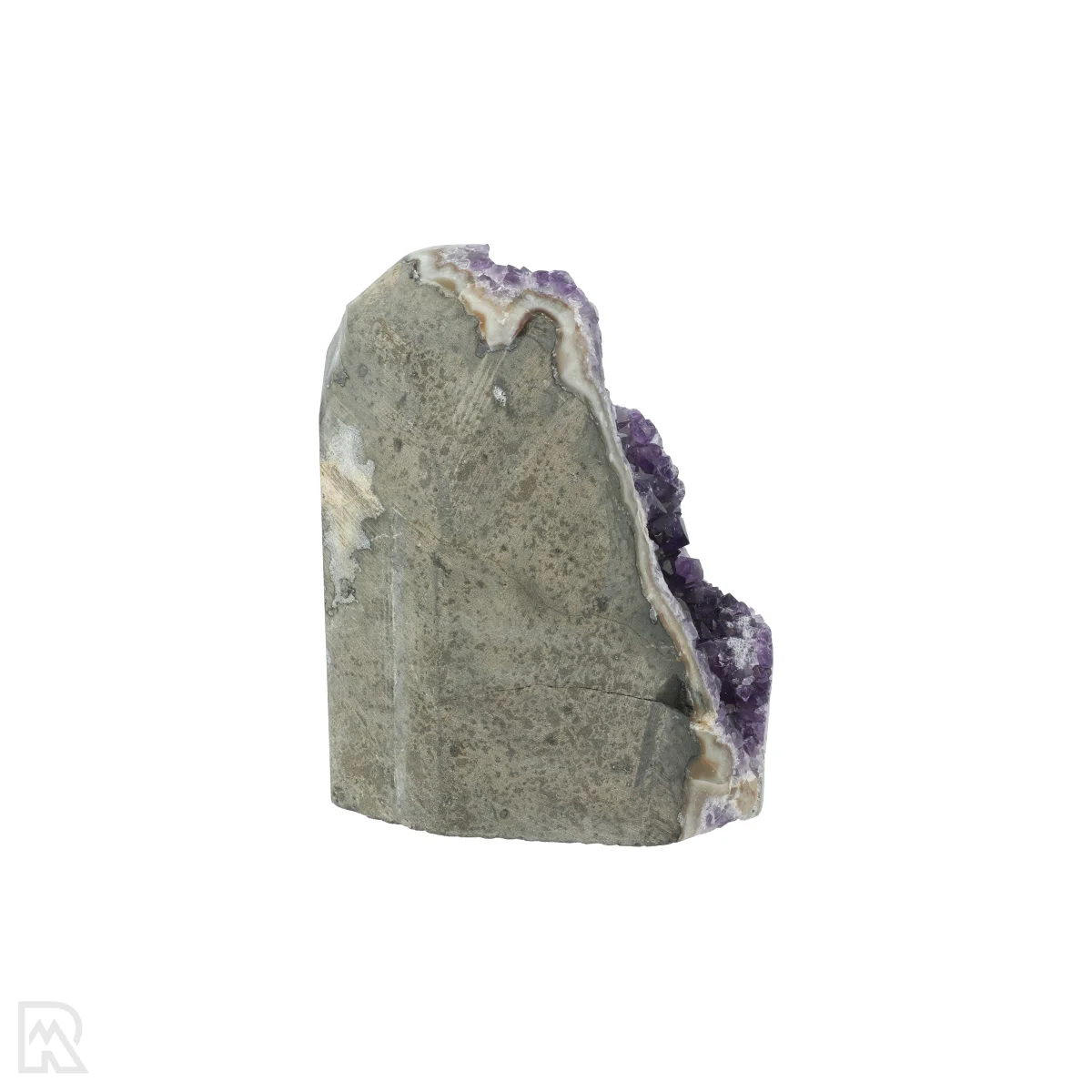 Amethist is de paarse variëteit van kwarts, gekleurd door sporen van ijzer en blootstelling aan natuurlijke straling. De kleur varieert van licht violet tot diep paars, en het kristalliseert vaak in zeshoekige prisma’s. Amethist wordt veel gebruikt als edelsteen en decoratief materiaal vanwege zijn aantrekkelijke kleur en transparantie.