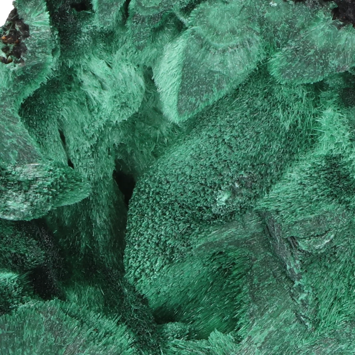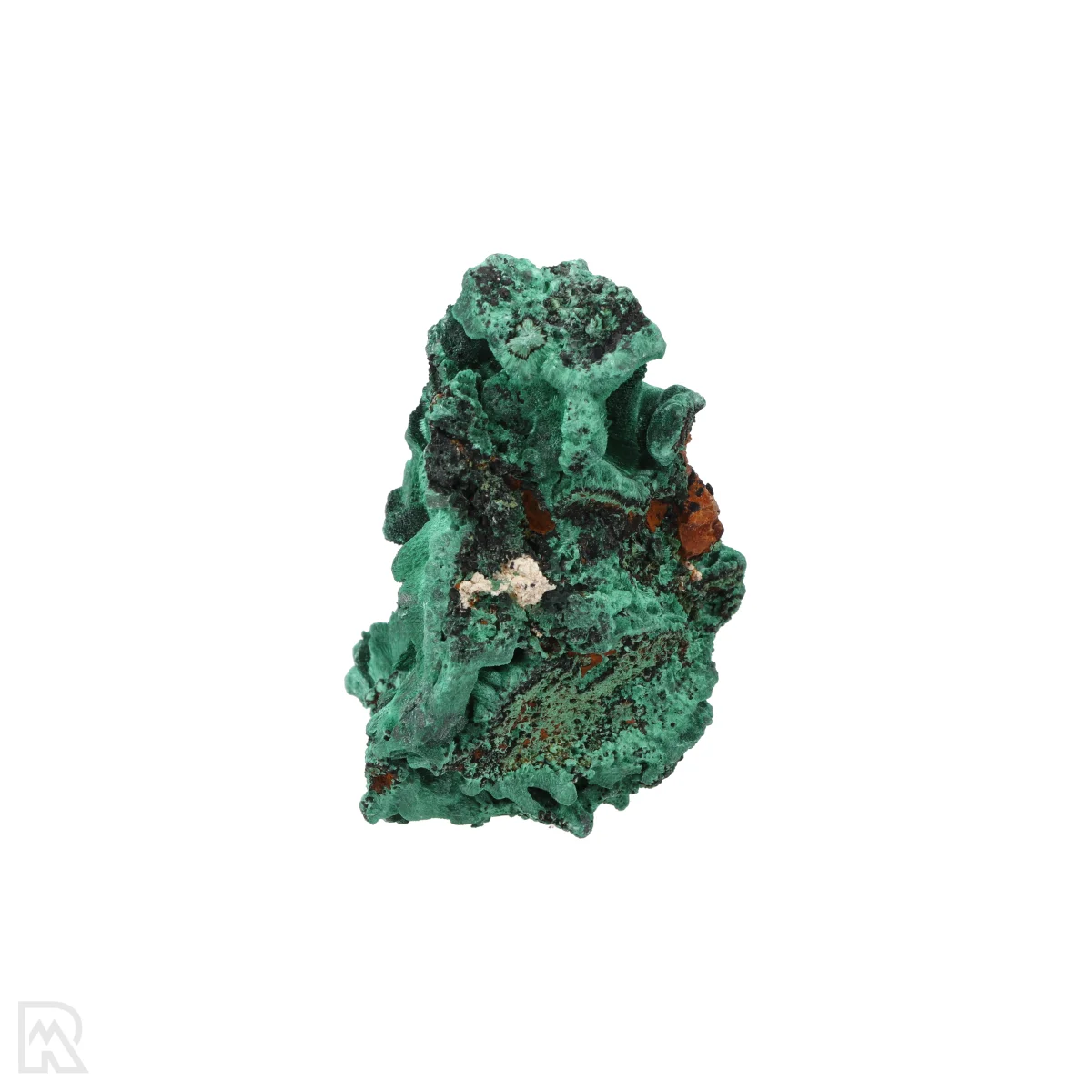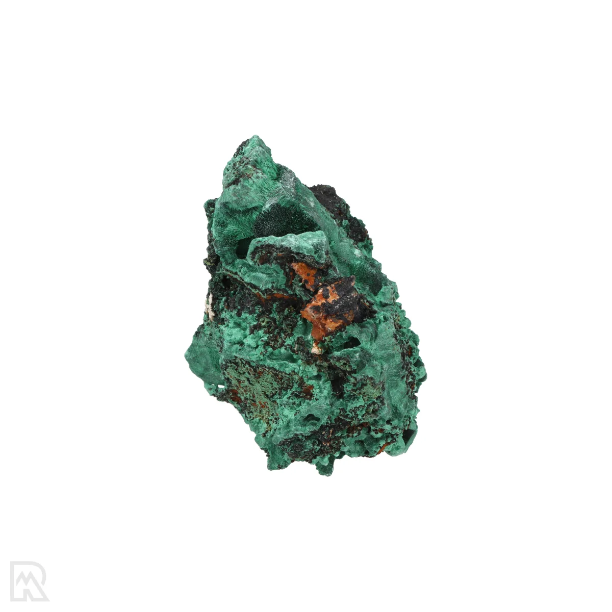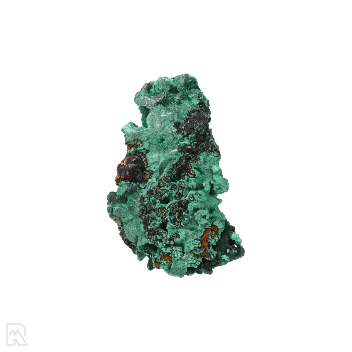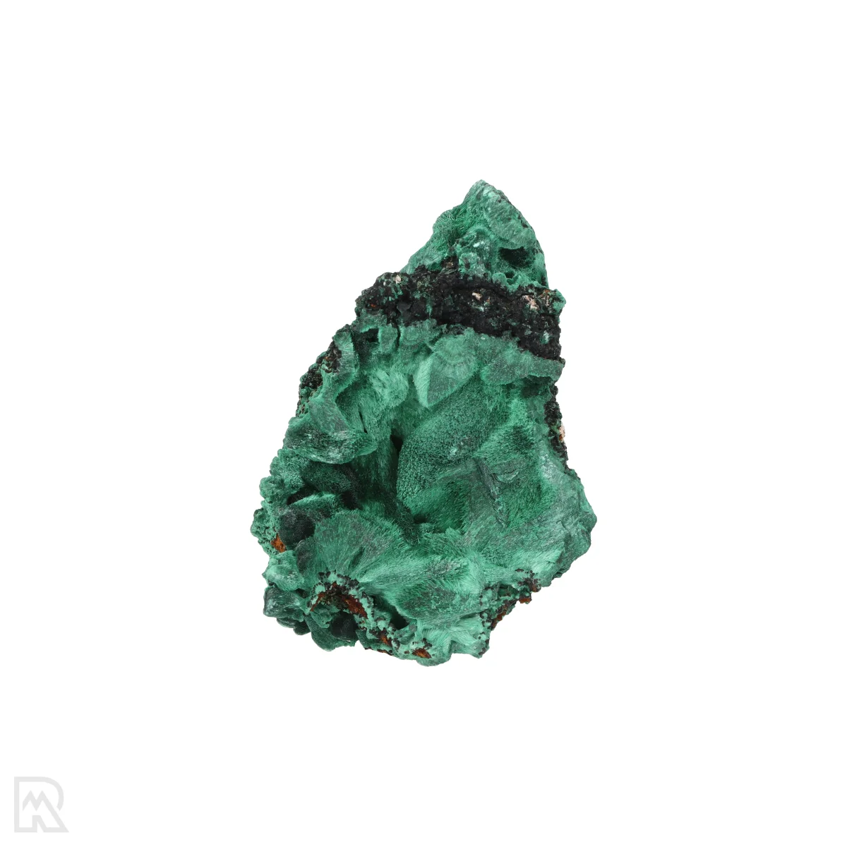 Malachiet is een intens groen koperhoudend mineraal dat opvalt door zijn karakteristieke bandpatronen en glas- tot zijdeachtige glans. De kleur varieert van lichtgroen tot donkergroen, vaak met concentrische of gelaagde tekeningen. Het mineraal vormt zich meestal in de oxidatiezones van koperafzettingen.
