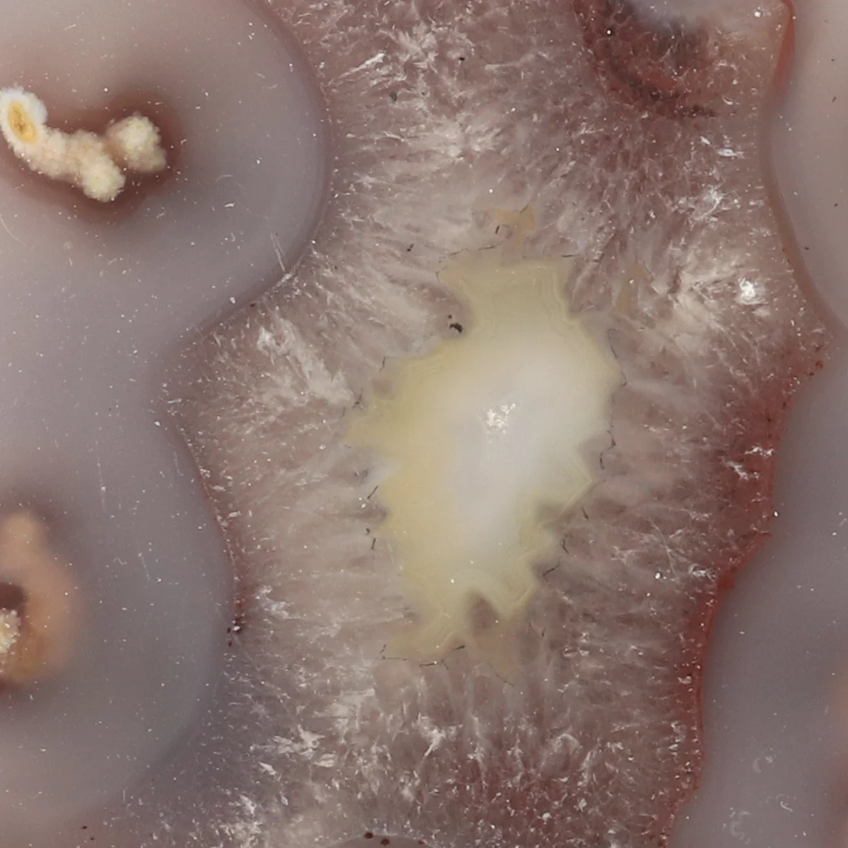 Agaat is een veelkleurige variƫteit van chalcedoon, die wordt gekenmerkt door zijn fijne bandstructuren en gelaagde patronen. De kleuren ontstaan door verschillende mineralen die tijdens de vorming in lagen zijn afgezet. Agaat wordt al duizenden jaren gebruikt voor sieraden en decoratie vanwege zijn aantrekkelijke uiterlijk en grote variatie in vormen.