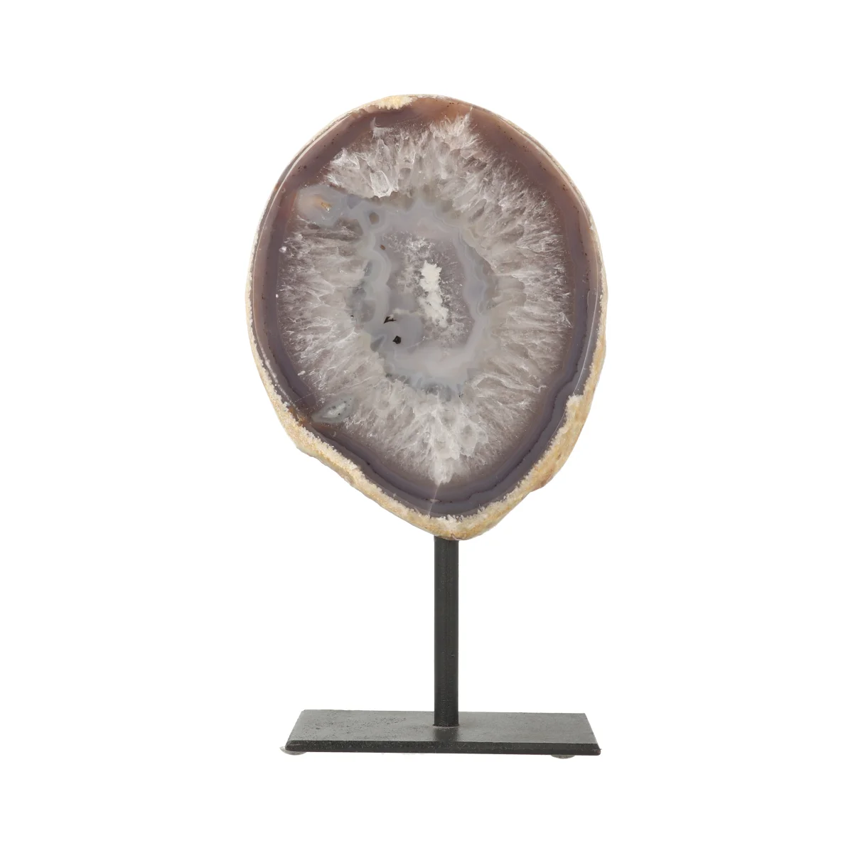 Een Agaat Geode heeft doorgaans een opening met zichtbare kristalvorming. Een Agaat Eind (het eindstuk van een geode) is meestal massief en heeft geen opening, maar kan heel soms lichte kristalvorming bevatten. De Agaat op Standaard is volledig massief en oogt daardoor over het algemeen eentoniger dan een Agaat Eind.