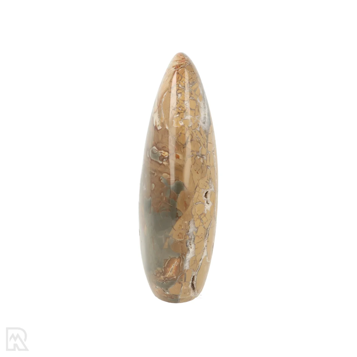 Jaspis is een dichte, fijnkorrelige variëteit van kwarts, vaak ondoorzichtig en in vele kleuren verkrijgbaar. De steen wordt gekenmerkt door zijn unieke patronen en kleurschakeringen, die ontstaan door insluitsels van andere mineralen of oxiden. Jaspis wordt vaak gevormd in sedimentaire of vulkanische omgevingen.