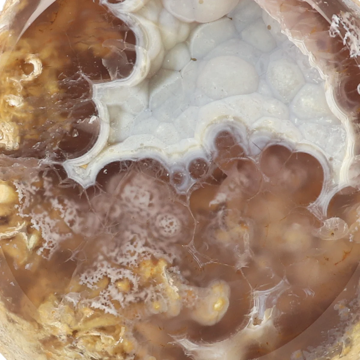 Agaat is een veelkleurige variƫteit van chalcedoon, die wordt gekenmerkt door zijn fijne bandstructuren en gelaagde patronen. De kleuren ontstaan door verschillende mineralen die tijdens de vorming in lagen zijn afgezet. Agaat wordt al duizenden jaren gebruikt voor sieraden en decoratie vanwege zijn aantrekkelijke uiterlijk en grote variatie in vormen.