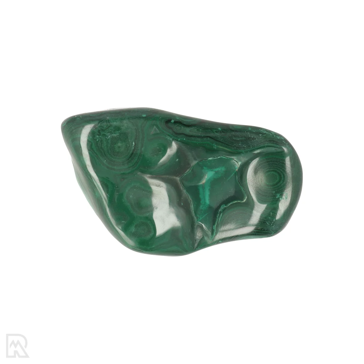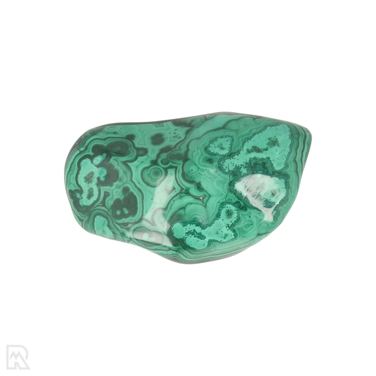 Malachiet is een intens groen koperhoudend mineraal dat opvalt door zijn karakteristieke bandpatronen en glas- tot zijdeachtige glans. De kleur varieert van lichtgroen tot donkergroen, vaak met concentrische of gelaagde tekeningen. Het mineraal vormt zich meestal in de oxidatiezones van koperafzettingen.
