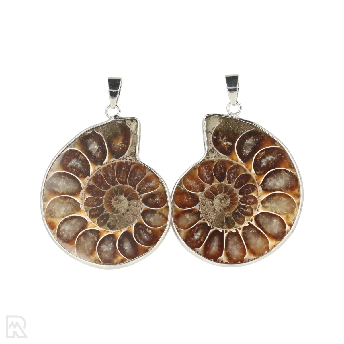 De ammonieten zijn doorgezaagd en gepolijst waardoor de kamers mooi zichtbaar worden.