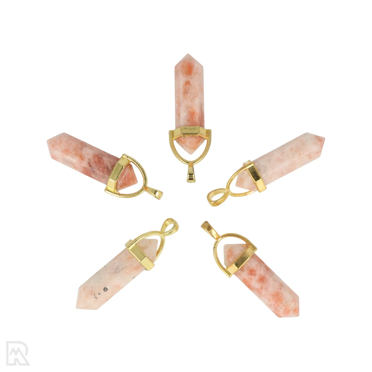 Zonnesteen Dubbeleinder Hanger | Goudkleurig – 3,2 cm
