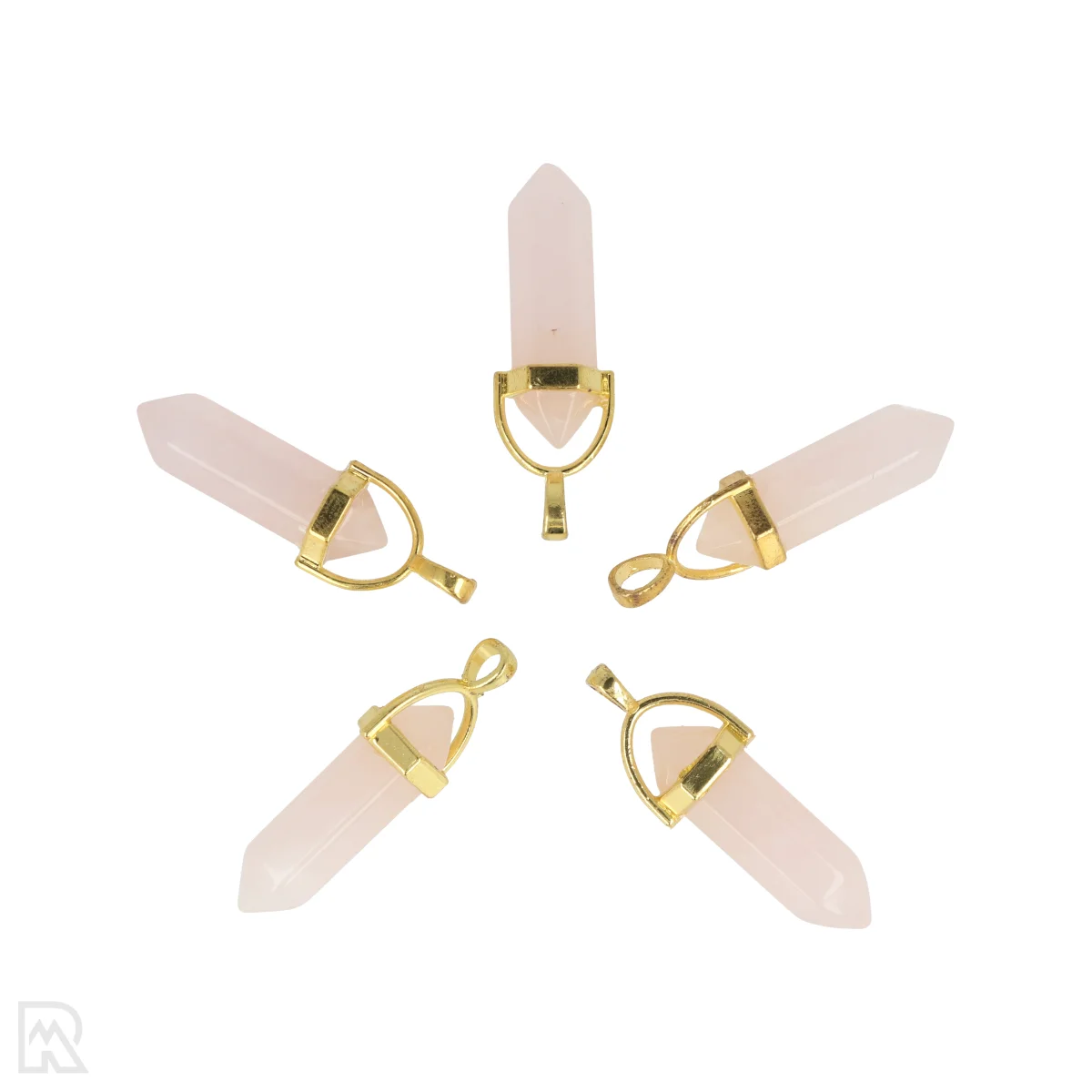 Rozenkwarts Dubbeleinder Hanger | Goudkleurig – 3,2 cm