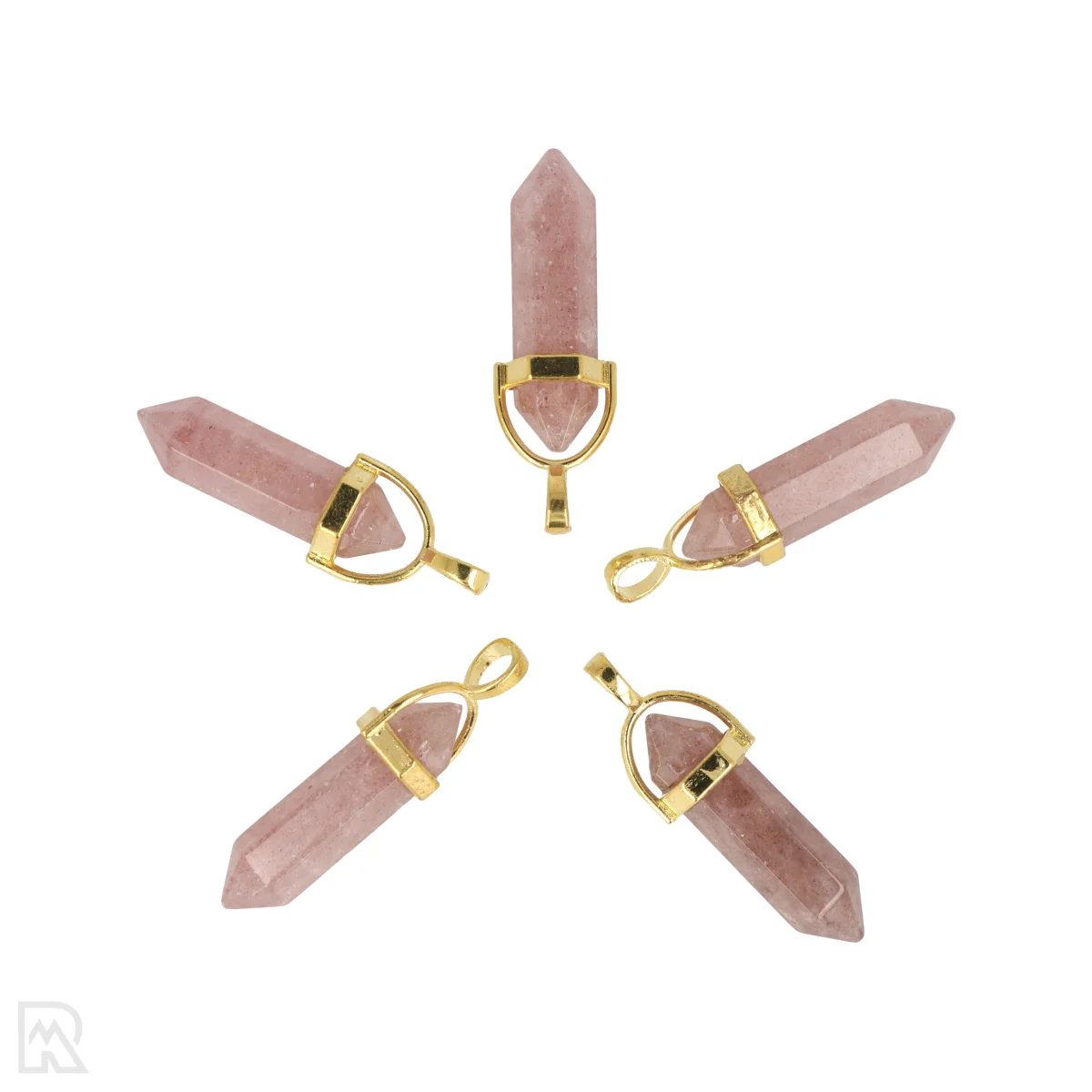 Aardbeienkwarts Dubbeleinder Hanger | Goudkleurig – 3,2 cm