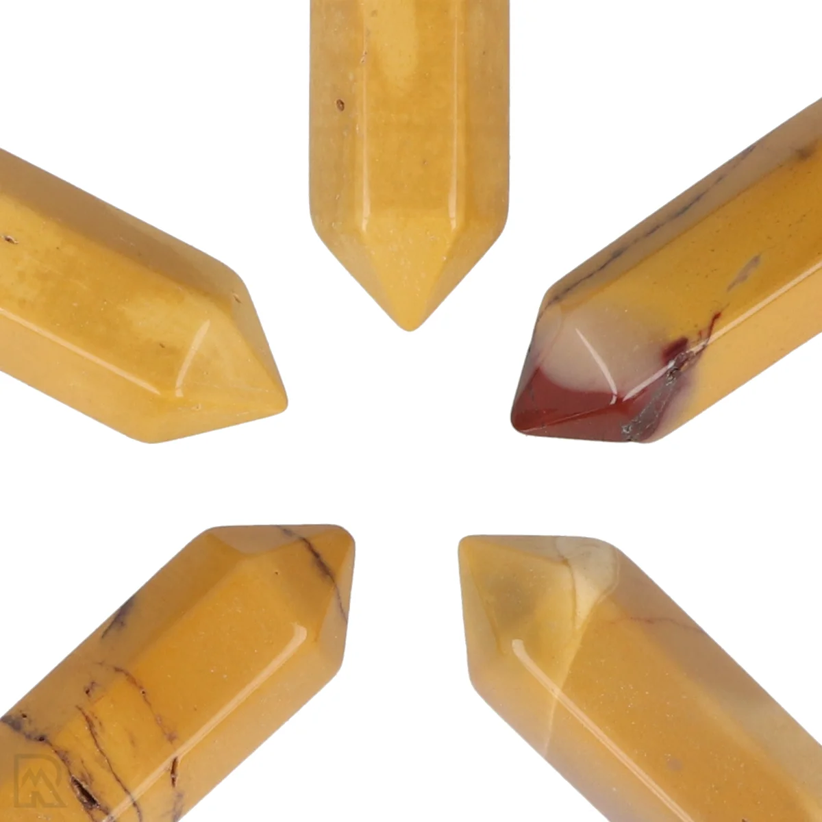 De tot dubbeleinder geslepen steen is bevestigd in een zilver- of goudkleurige houder met oog. De dubbeleinder heeft een lengte van circa 3,2 cm, gemeten zonder het oog. Deze hangers zijn beschikbaar in verschillende steensoorten en worden per stuk geleverd. Door het gebruik van natuursteen kunnen kleur, tekening en afwerking per hanger onderling licht verschillen.