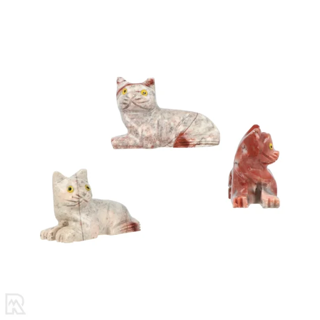 De speksteen dieren zijn circa 5 cm en worden verkocht per 5 stuks. De kleur van zowel de oogjes als de speksteen (kunnen) verschillen per exemplaar. Je ontvangt een willekeurige selectie.