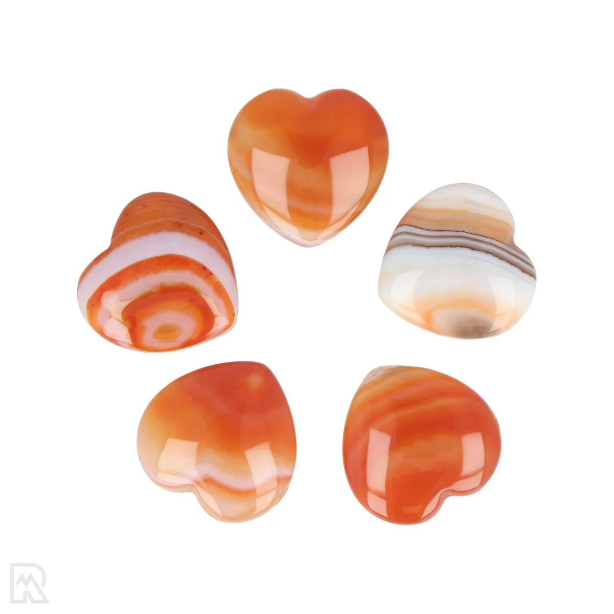 Carneool Geband Doorboorde Hart Hanger | 2 cm