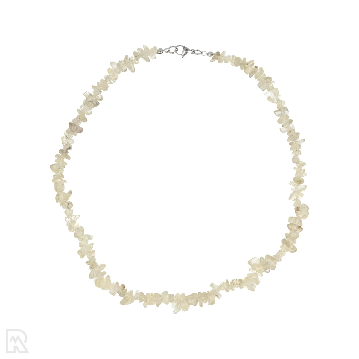 Onze kettingen zijn verkrijgbaar in verschillende uitvoeringen, waaronder facet, kogel, split en geknoopte kettingen. Op dit moment zijn alle kettingen in ons assortiment 45 cm lang, wat overeenkomt met een standaard draaglengte voor de meeste halsmaten. De gebruikte kralen of splinters variëren in vorm en afwerking, wat elke ketting een uniek karakter geeft.
